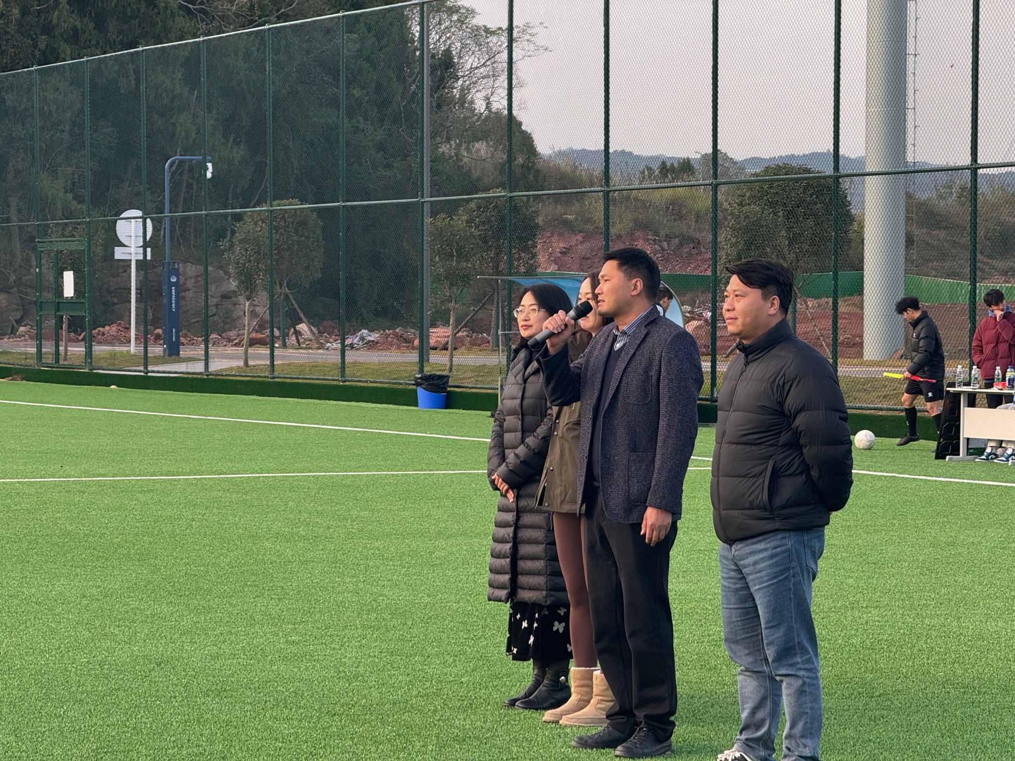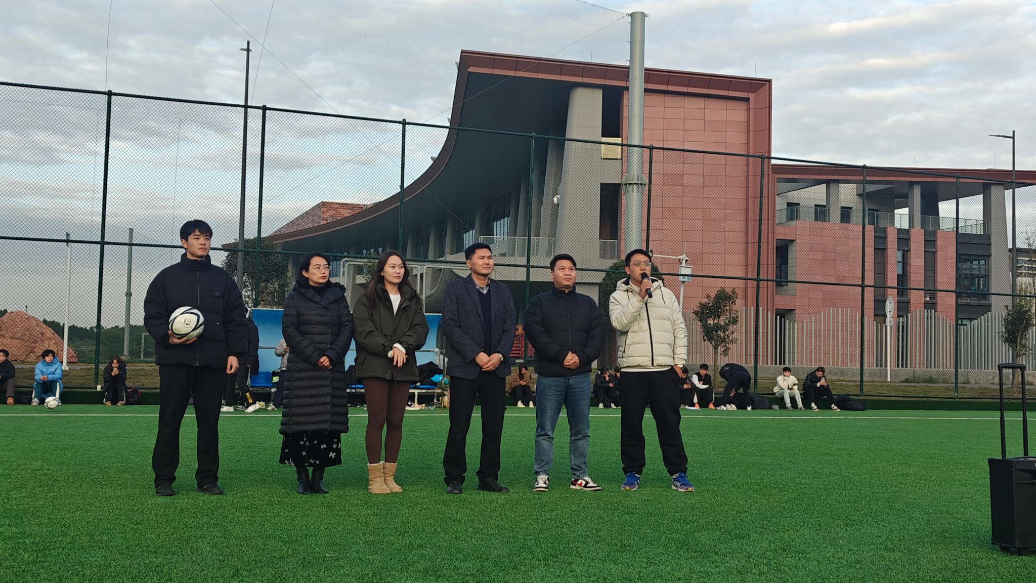 11月25日,武术学院迎来了2024年足球友谊赛的盛大开幕式。本次比赛以“‘武’动青春,‘足’梦起航”为主题,旨在丰富同学们的课余生活,增强团队合作精神和集体荣誉感。比赛吸引了同学们的积极参与,现场气氛热烈,充满了青春与活力。出席本次开幕式的有武术学院党委书记罗兴山、本科生管理办公室主任李阳、团总支书记刘洪源、各班班主任,以及各参赛队伍的代表和热情洋溢的观众。开幕式由刘洪源老师主持。