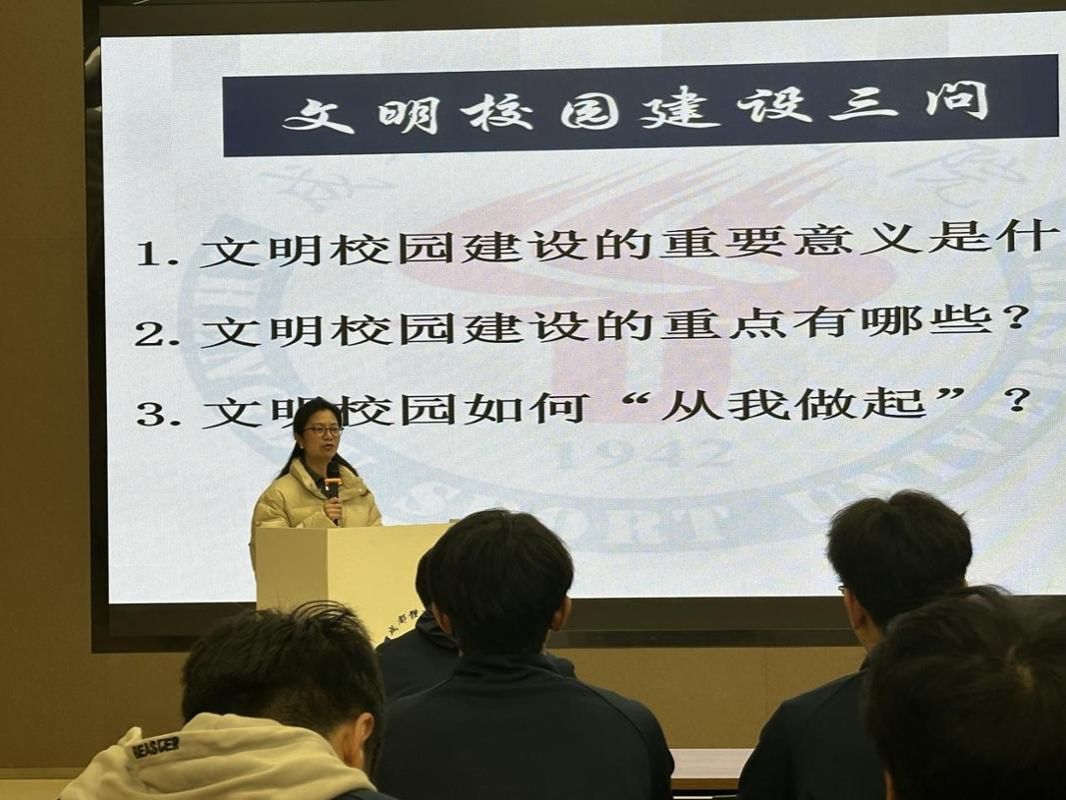 班主任在各班班会中强调,文明校园建设是对校园文化和校园风貌的具体体现,需要师生共建和维护;要求全体同学自觉遵守校纪校规,在校园内禁止吸烟、禁止电单车载人、规范仪容仪表;注重宿舍安全,切实提高网络安全意识。