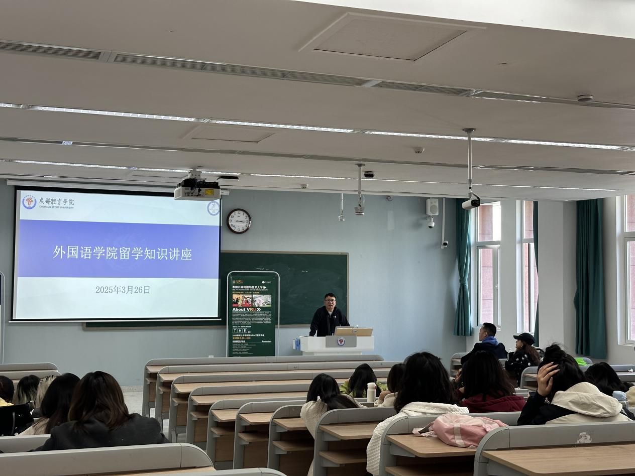 为拓宽毕业生就业与升学渠道,推动国际化人才培养,外国语学院于3月26日下午在行健楼A207教室举办留学知识专题讲座。本次宣讲特邀成都学子尚教育咨询有限公司负责人曾兴建担任主讲,学院李航副院长出席并作动员讲话。2025届毕业生和三年级学生参加本次宣讲。