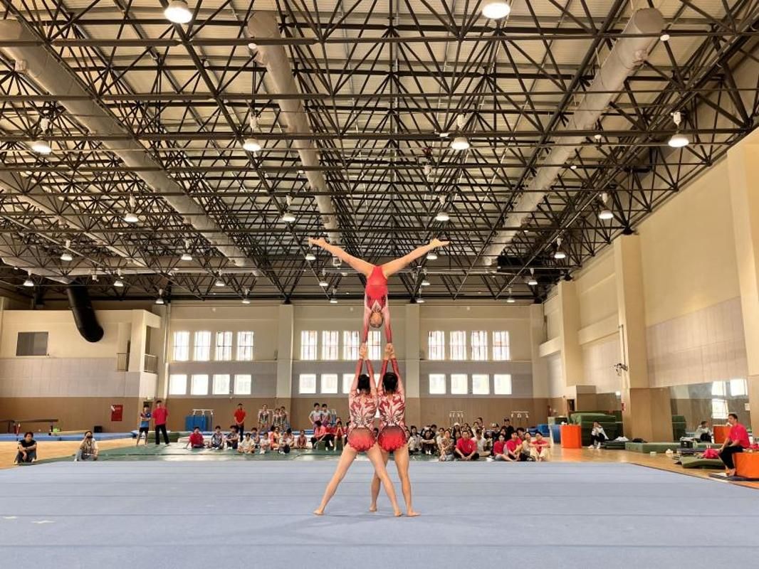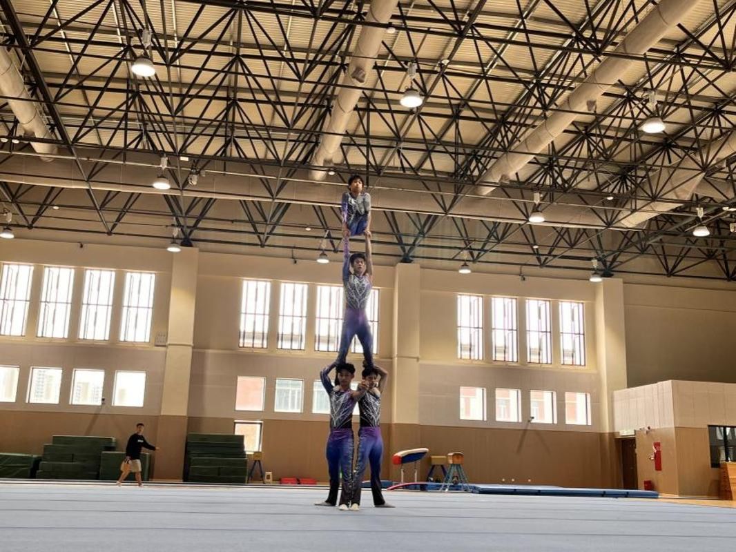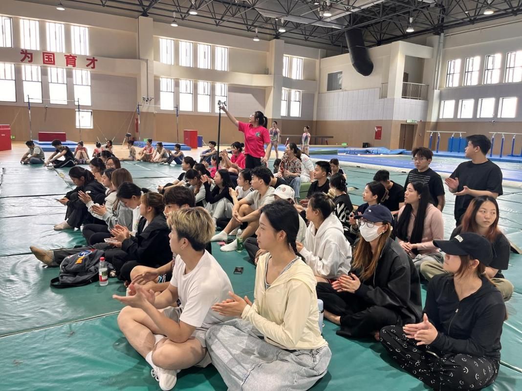 2025年5月7日,体育教育学院体操教研室与成都蹦床技巧队在体操馆开展技巧课程交流活动。