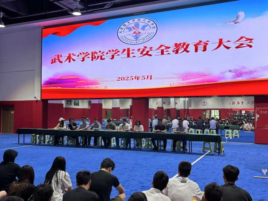 5月15日,武术学院在武术馆一楼召开学生安全教育大会。学院党委书记罗兴山、研管办与学管办全体辅导员、各班班主任及全体学生共同参会。