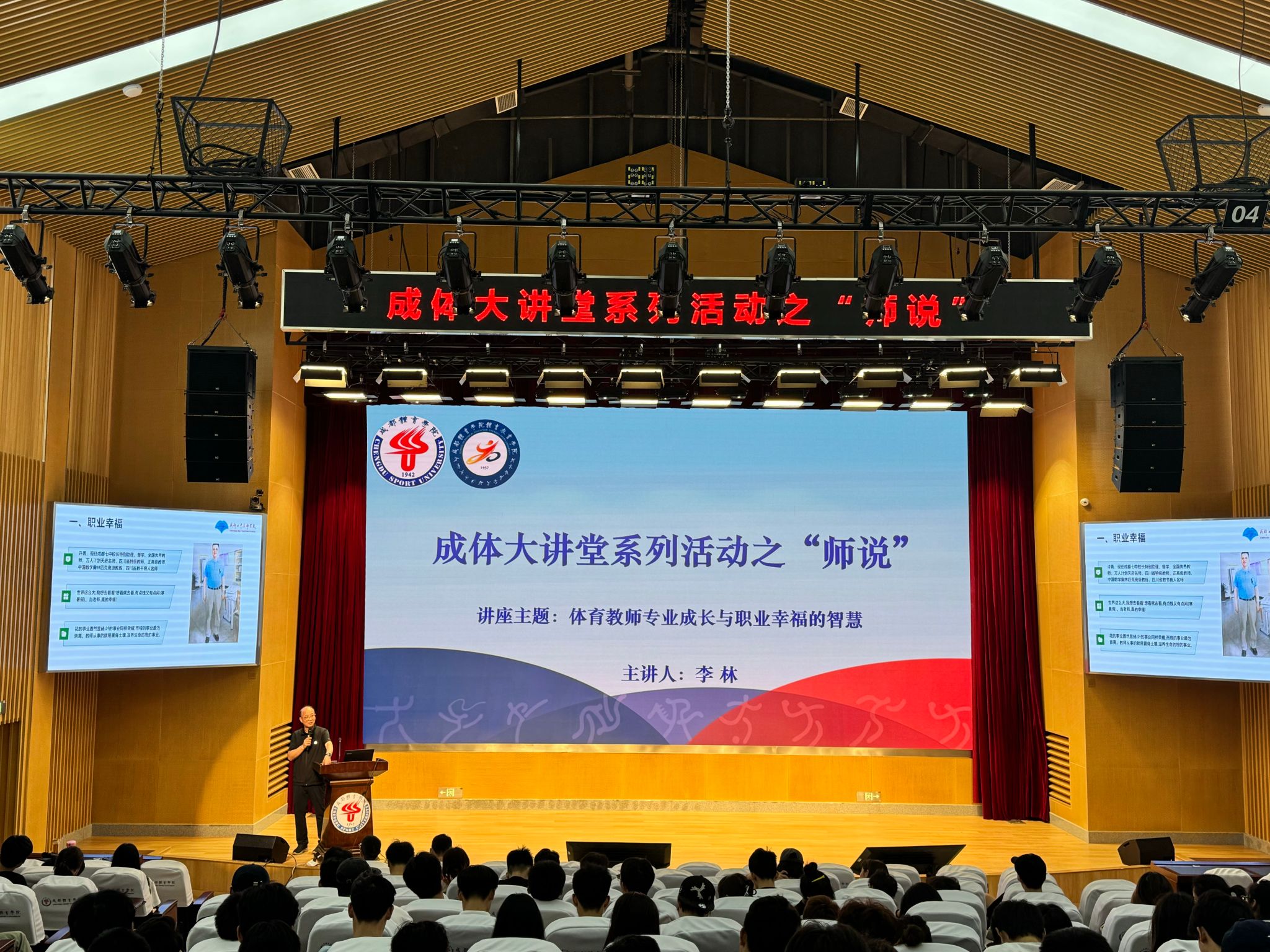 5月16日下午,“成体大讲堂”系列活动之“师说”在行健楼同传室开讲。成都七中副校长、成都七中东部学校党支部书记、校长李林受邀到我校作题为“体育教师专业成长与职业幸福的智慧”的讲座。讲座由体育教育学院副院长吴小彬主持。