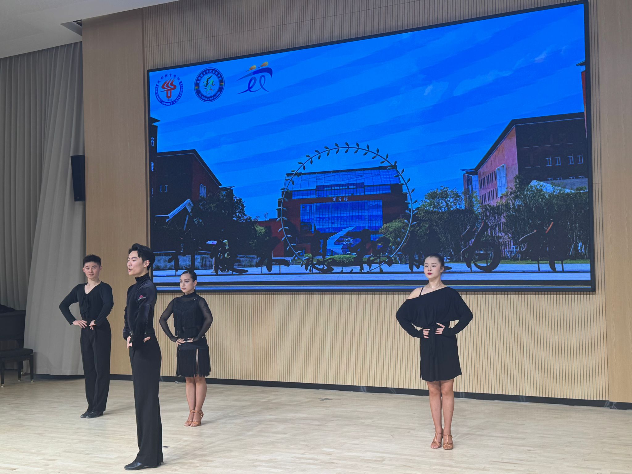 近日,艺术学院国际标准舞教研室教师团队受成都电视台《幸福188》栏目特邀,参与“世界运动会体育舞蹈项目”科普教学系列节目录制。节目围绕体育舞蹈中拉丁舞和标准舞两支舞系展开,共录制6期,涉及华尔兹、探戈、快步、牛仔、恰恰5个舞种。节目于5月21日起每晚20:00在成都电视台第3套播出。
