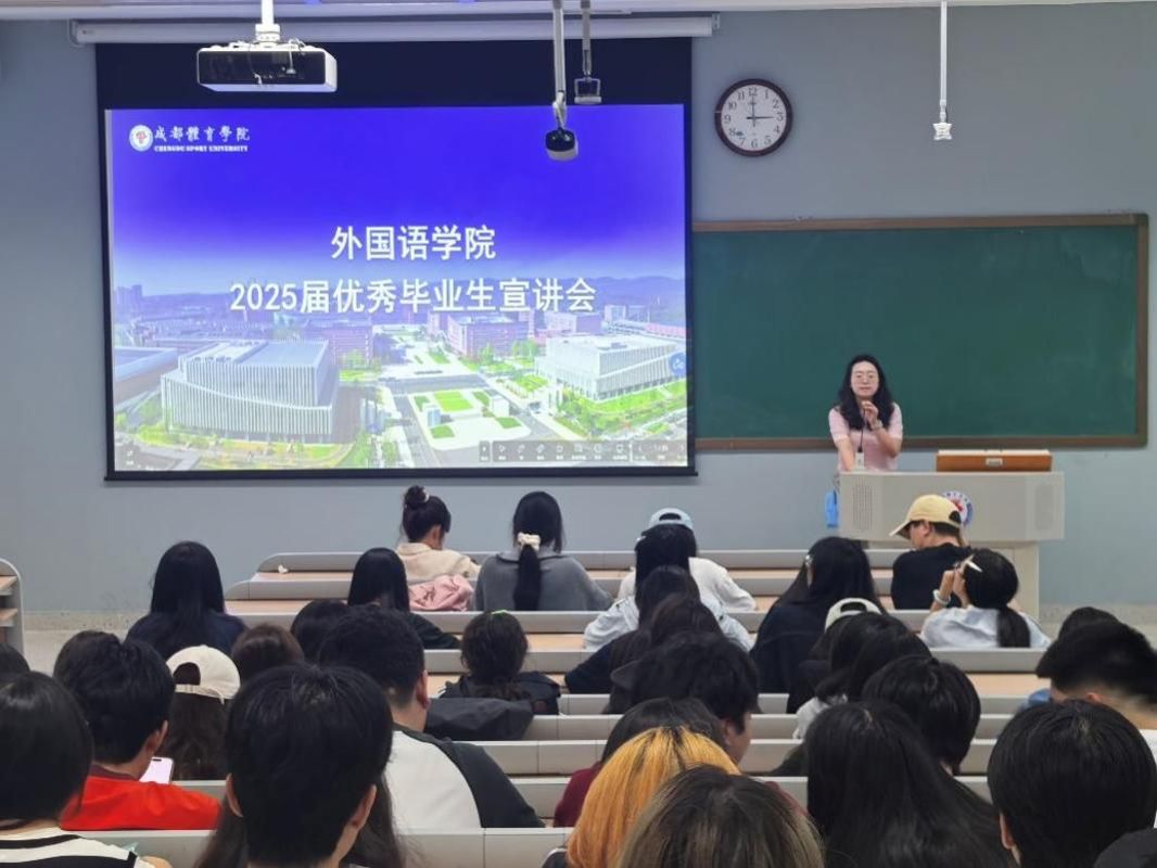 为帮助学生明晰奋斗方向,5月27日下午,外国语学院在行健楼A106教室开展优秀毕业生先进事迹宣讲会。本次活动特邀2025届优秀毕业生余苗和王国全进行宣讲。余苗现已保研至成都体育学院,王国全现就职于成都王府外国语学校。2024级全体学生参与,宣讲会由辅导员樊芷吟主持。