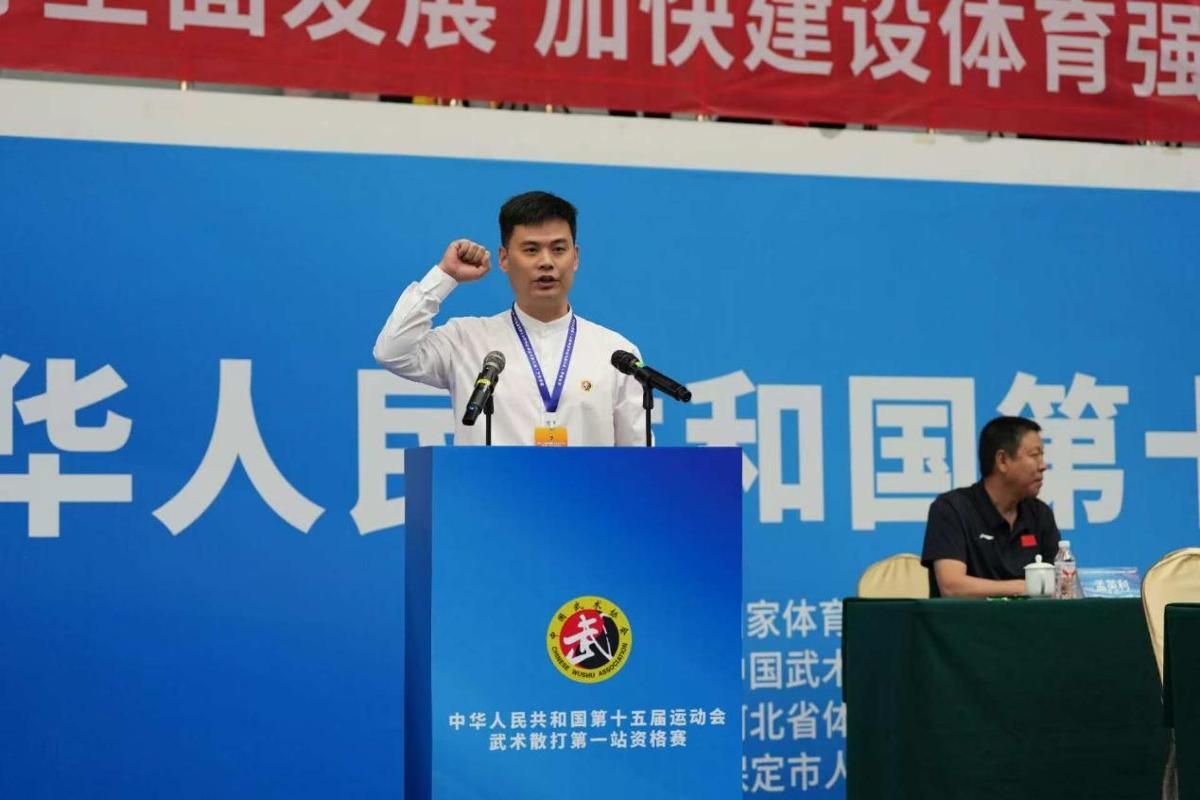 5月21日至27日,中华人民共和国第十五届运动会武术散打第一站资格赛在河北保定隆重举行。本次赛事汇聚了来自全国各省、直辖市、行业体协及高等体育院校的39支代表队、311名顶尖散打运动员,共同角逐决赛晋级席位。我校武术学院赵斌教授、应磊副教授作为武术散打国际A级裁判,受邀参与赛事执裁工作,展现了卓越的专业素养。
