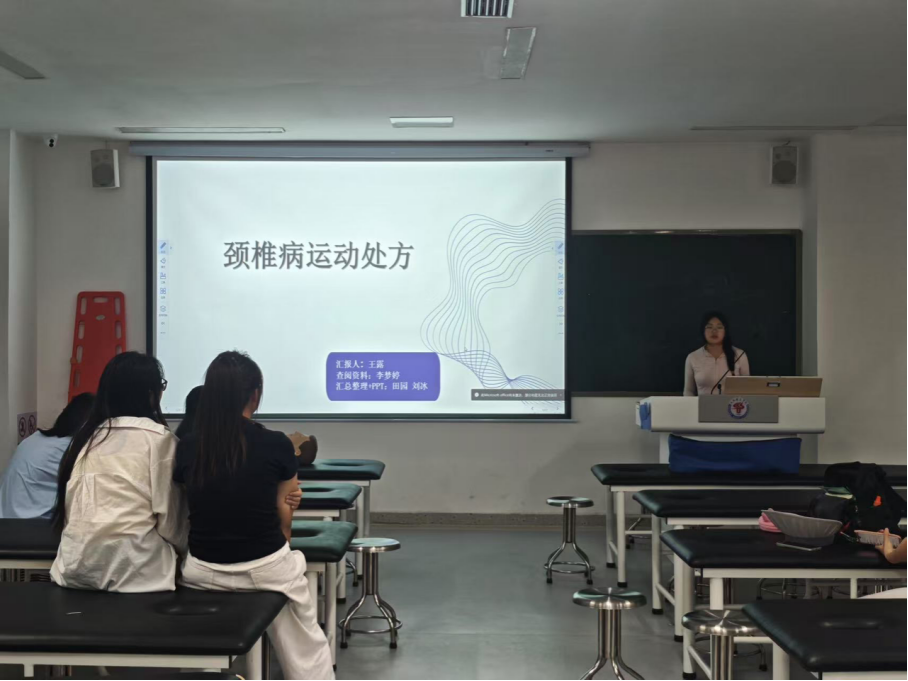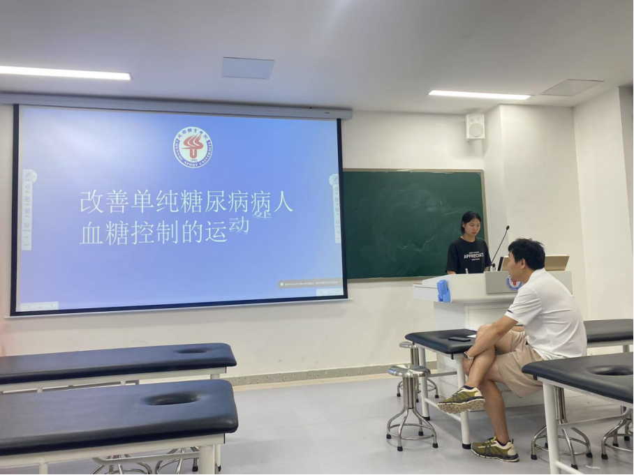 “运动处方制定”环节采用小组PPT汇报的形式,同学们需要针对不同人群制定个性化的运动处方,涵盖运动前的健康筛查以及具体的运动处方内容。“现场急救模拟”即现场急救心肺复苏演示,包括胸外按压操作和人工呼吸,同学们将所学的急救知识熟练运用到模拟场景中,动作迅速、操作规范、冷静应对,充分展现了良好的专业素养和应急处理能力。