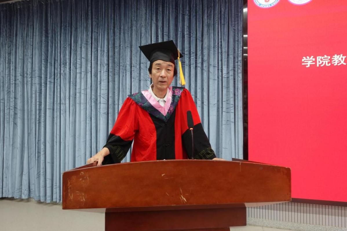 学院学术委员会主席、博士生导师张新教授作为教师代表深情寄语。他既以师者身份为学子送行,亦因个人卸下教鞭告别成体而感慨。在祝贺毕业生完成学业的同时,他嘱托学子坚守专业与文化自信,在社会实践中体悟历史智慧,以“行健不息”之姿恪守人生正道,更以弘一法师“问君此去几时来,来时莫徘徊”的词句,盼学子他日携志归来。