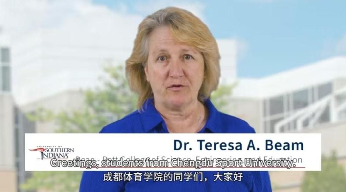 接着,见面会现场播放了南印第安纳大学波特科学、工程与教育学院院长Teresa A. Bean对新生的寄语。她鼓励同学们积极搭建文化交流的桥梁,努力成为体育管理领域的领军者。