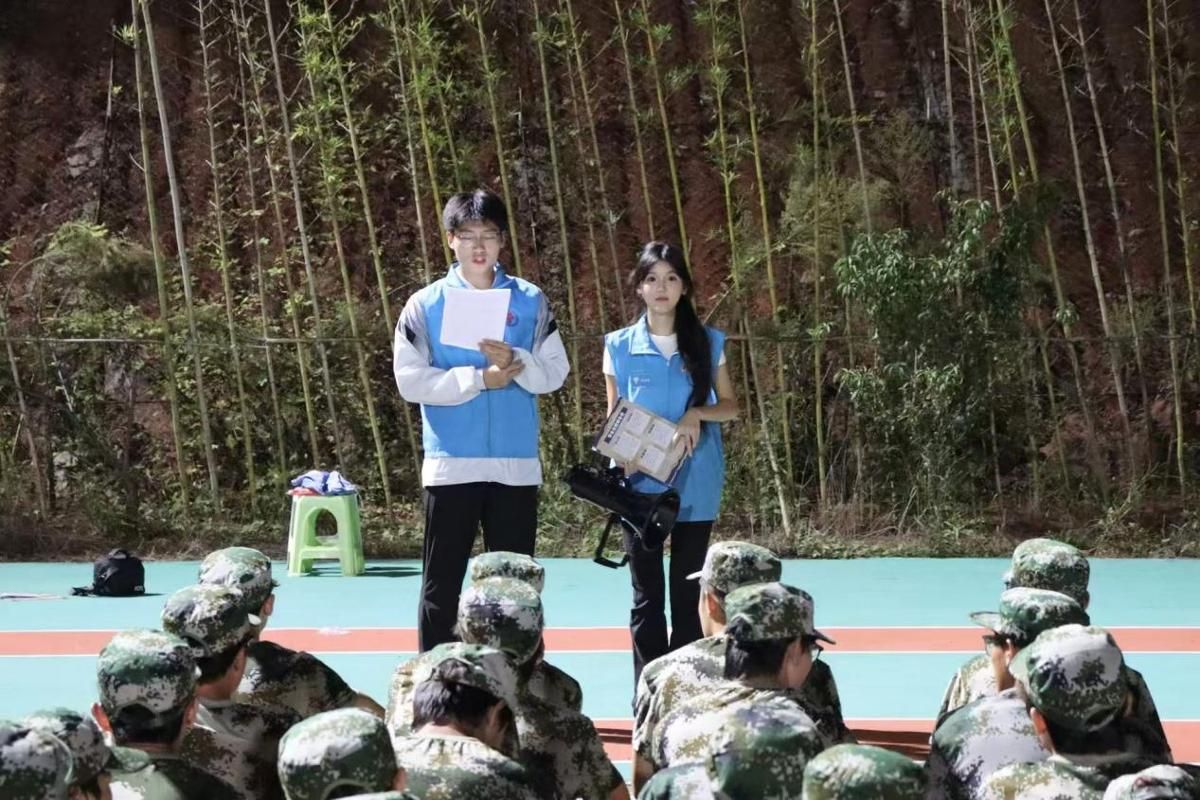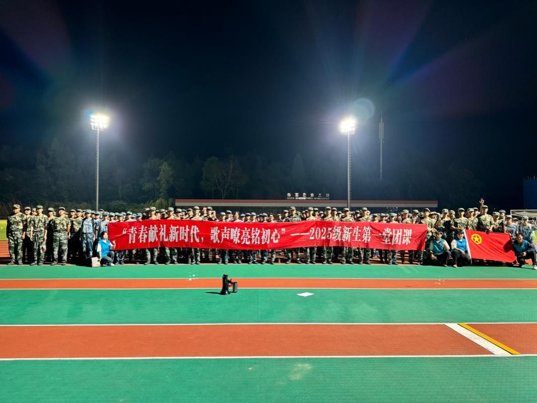 9月21日,校学生会、学生社团联合会全体成员深入2025级新生军事训练场地,开展了一场特殊的入学教育暨第一堂团课活动。活动以教唱校歌、团歌为载体,结合学习习近平总书记纪念抗战胜利80周年重要讲话精神和“九三阅兵”精神,引导新生增强家国情怀,从伟大抗战精神中汲取奋进力量。