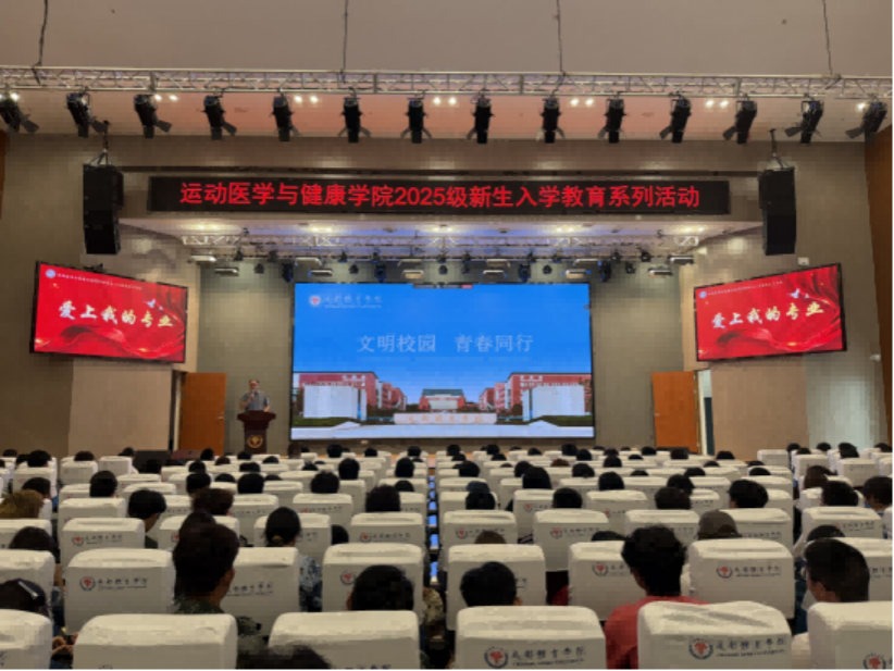 2025年9月16日,运动医学与健康学院举行了2025级新生入学教育。主会场在图书馆学术报告厅,同时有行健楼同传室、行健楼多功能室两个分会场。学院领导发表讲话,全体新生及新生班主任、辅导员参会。会议由李顺昌副院长主持。