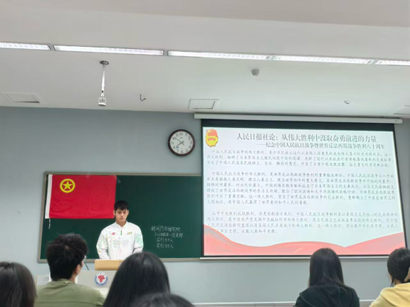 各团总支高度重视、精心组织,以支部为单位扎实推进学习任务。通过集中学习习近平总书记在纪念中国人民抗日战争暨世界反法西斯战争胜利80周年大会上的重要讲话精神,广大团员青年进一步理解了抗战精神的深刻内涵与时代回响。在理论学习、小组研讨等环节中,同学们围绕抗战胜利的伟大意义、抗战精神在当下的价值体现等议题展开深入交流,结合个人成长与社会现实畅谈体会,现场氛围庄重而热烈。