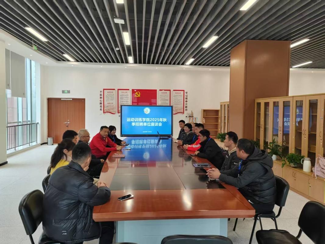 为搭建用人单位与毕业生的精准对接平台,助力2026届毕业生高质量就业,11月7日,运动训练学院2025年秋季招聘单位座谈会在图书馆2-6会议室顺利举行。学院党委书记彭健、院长杨成波及相关工作人员参会,与来自省内外的13家用人单位代表围绕人才需求、就业合作等议题展开深入交流。