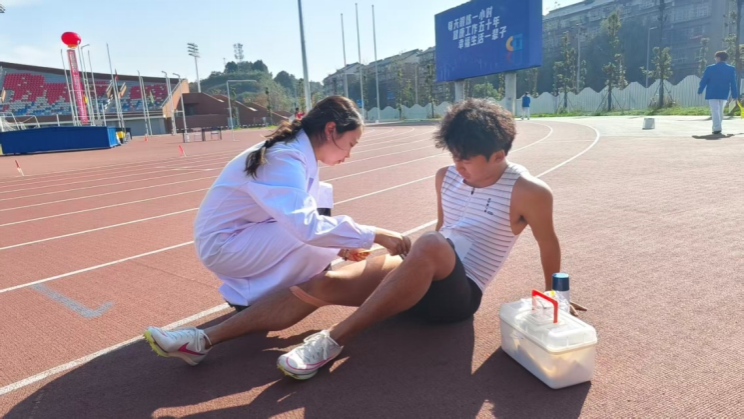 2025年11月,在校运会期间,由运动医学与健康学院师生组建的“2025年成都体育学院运动会医疗保障服务队”,在校运会各赛场上忙碌而有序、迅速而规范地为运动员们提供运动防护、运动损伤防护处置等医疗保障服务,他们忙碌的身影与赛场上拼搏的英姿同辉,共同筑成校运会动人的风景。
