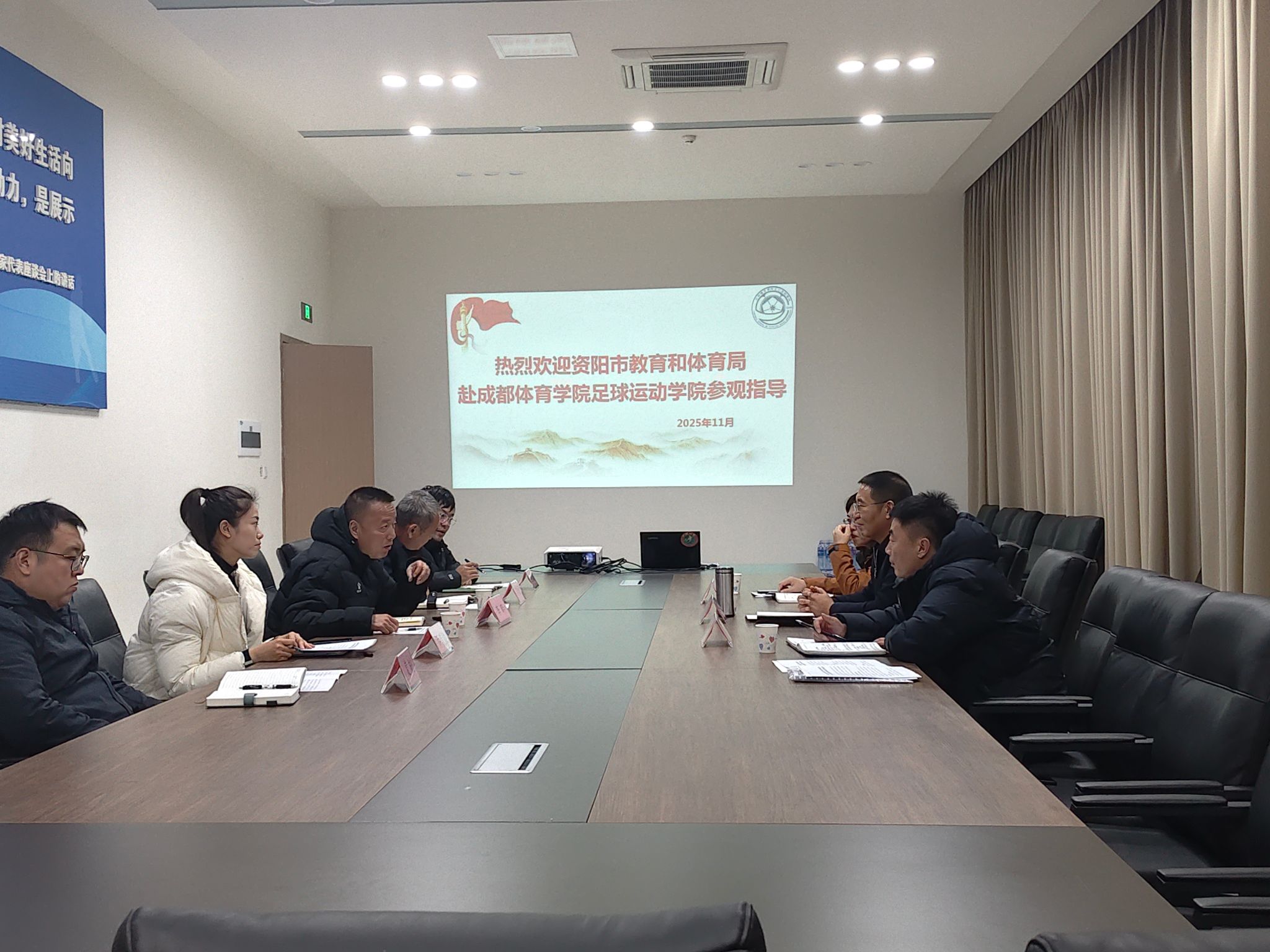 2025年11月26日,资阳市教育和体育局局长谭德奎,副局长黄琼一行三人到成都体育学院足球运动学院开展交流考察,院长李畔、副院长李增民、相关科室负责人参加本次活动。