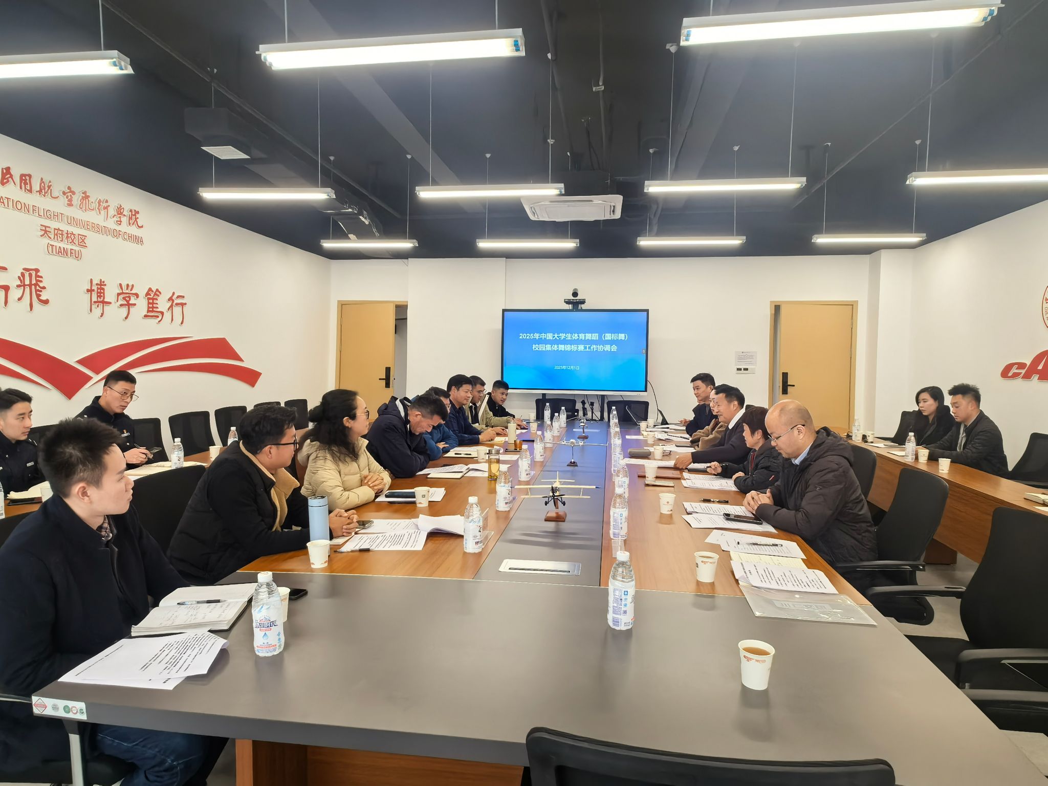 12月1日,2025年中国大学生体育舞蹈(国标舞)校园集体舞锦标赛协调会在中国民用航空飞行学院冯如楼7081会议室召开。成都体育学院党委常委、副校长付东,中国民航飞行学院党委常委、副院长李卫东,中国大学生体育协会体育舞蹈分会副秘书长蒋远松同志及承办单位、协办单位、执行公司代表、各专项工作组负责人参加会议。会议由成都体育学院教务处张萍副处长主持。