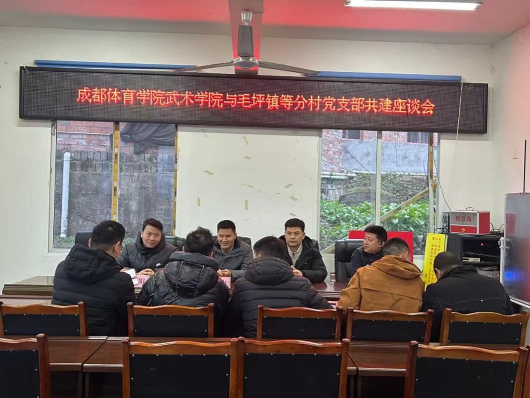 活动中,武术学院党委与毛坪镇等分村党支部共同召开了共建交流座谈会。双方围绕组织建设互促、党员队伍互动、党建载体互用、乡村振兴互助等方面进行了深入交流。学院党委书记介绍了武术学院在党建育人、武术文化推广、武术公益服务等方面的特色与资源,表示希望通过支部共建,发挥高校专业优势,助力乡村文化振兴与健康乡村建设。村党支部书记宋云波介绍了当地在产业发展、基层治理、群众体育方面的现状与需求。双方就下一步常态化开展武术健身指导、乡村体育文化活动、青少年体质提升等项目达成初步合作意向。