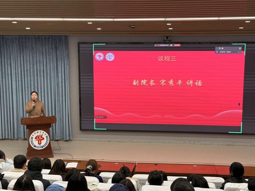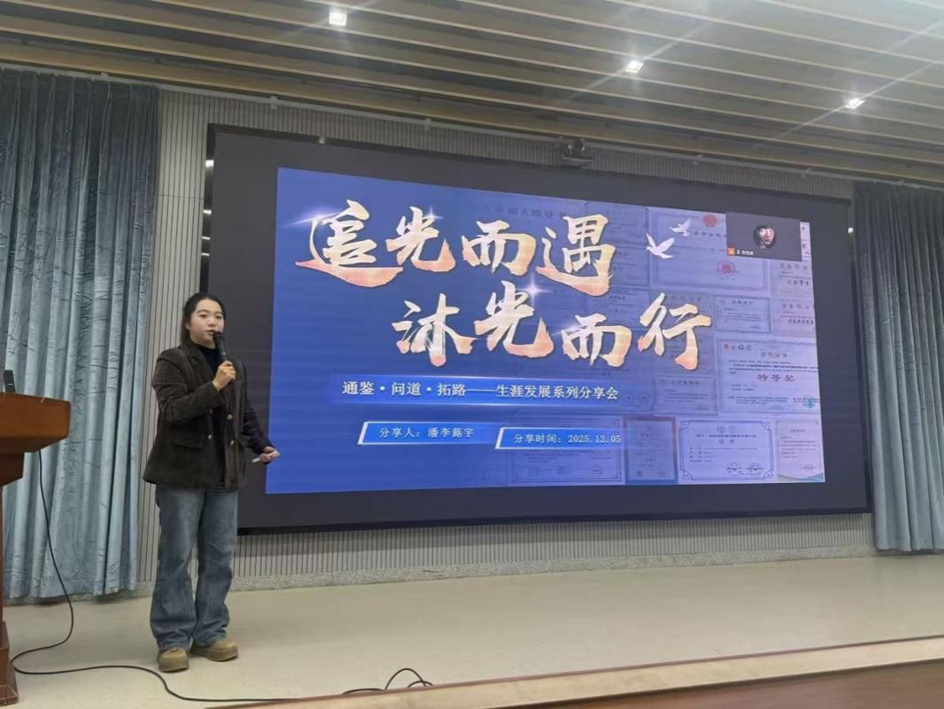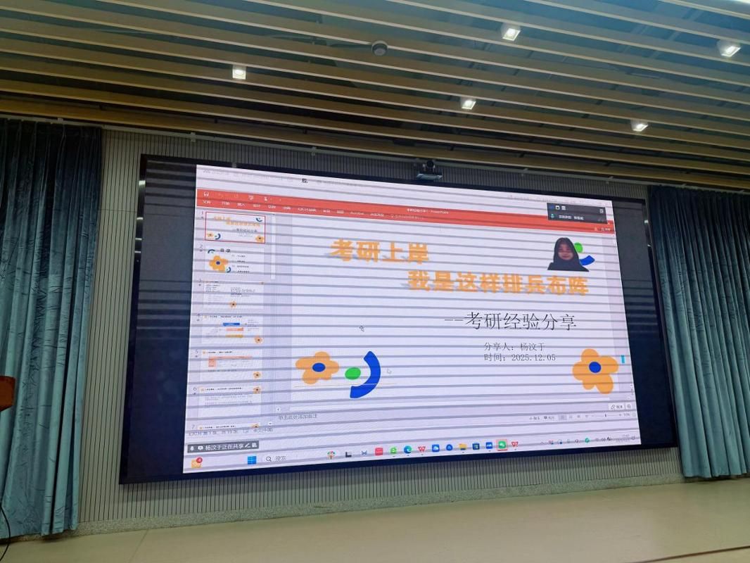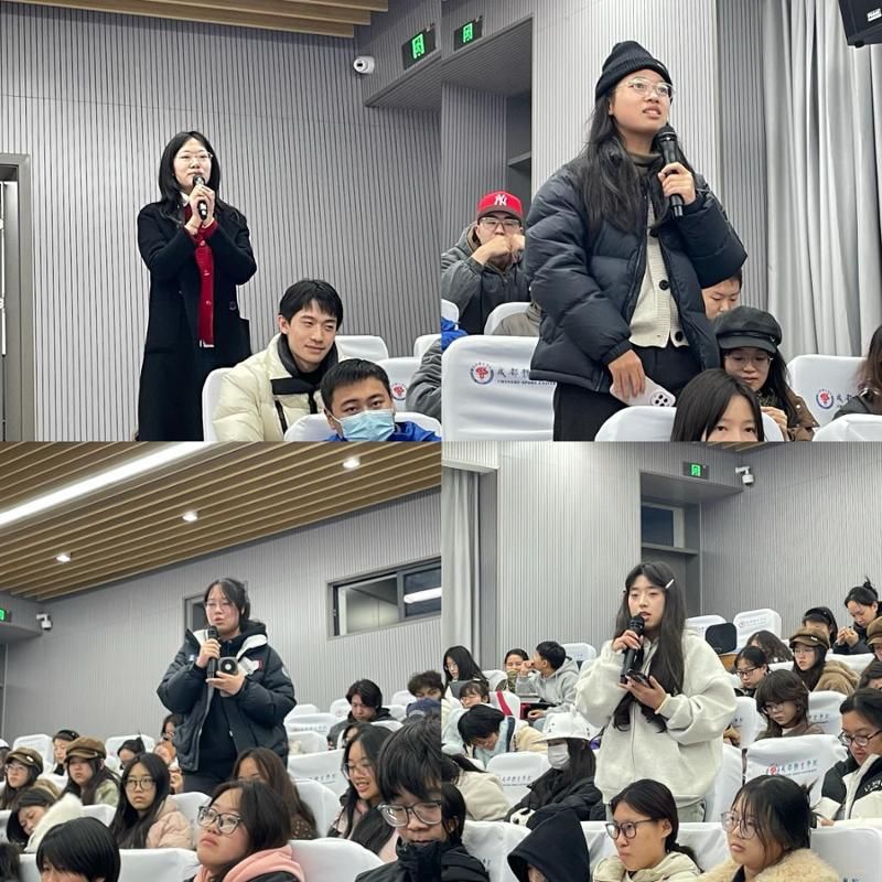 学管办副主任萨捷首先阐述了本次活动的目的与意义,希望同学们能通过此次活动汲取经验、树立信心、规划未来。随后,2023届毕业生杨汶于、2024届毕业生刘嘉伟、2025届毕业生邹亿栖和2026届毕业生潘李蕗宇结合自身成长经历,围绕考研升学、职业选择、大学规划等话题展开分享。他们从学业准备、实习实践、心态调整等多方面展开细致讲解,并为现场同学答疑解惑,气氛热烈。