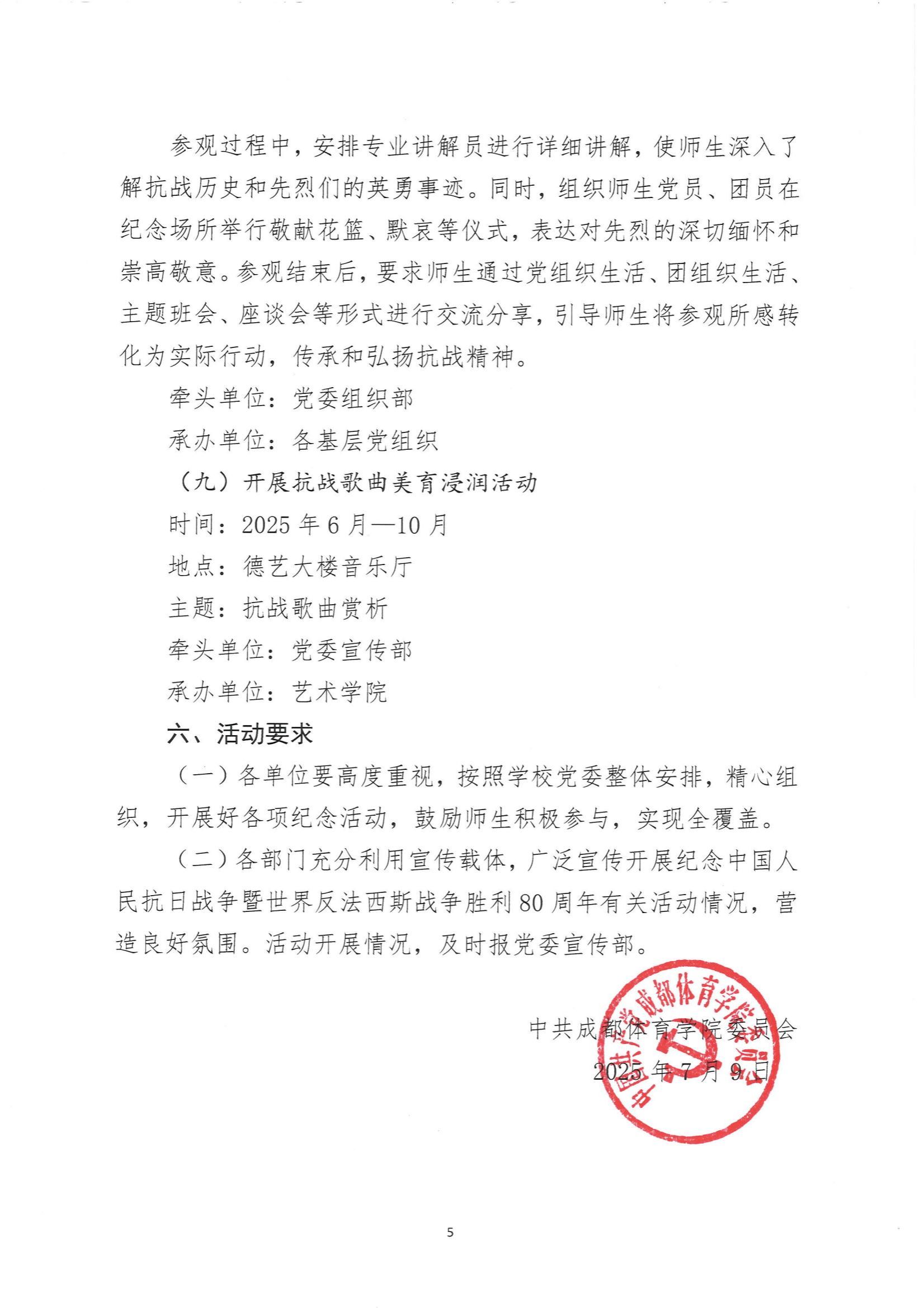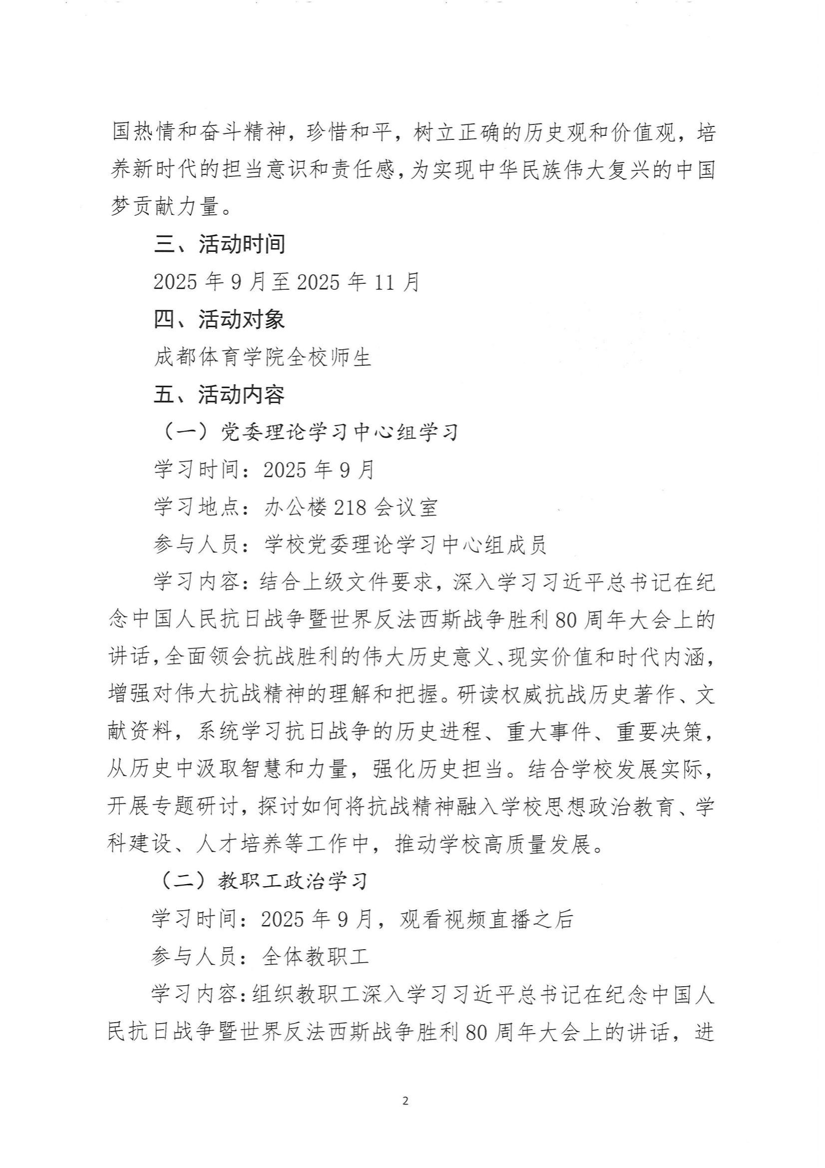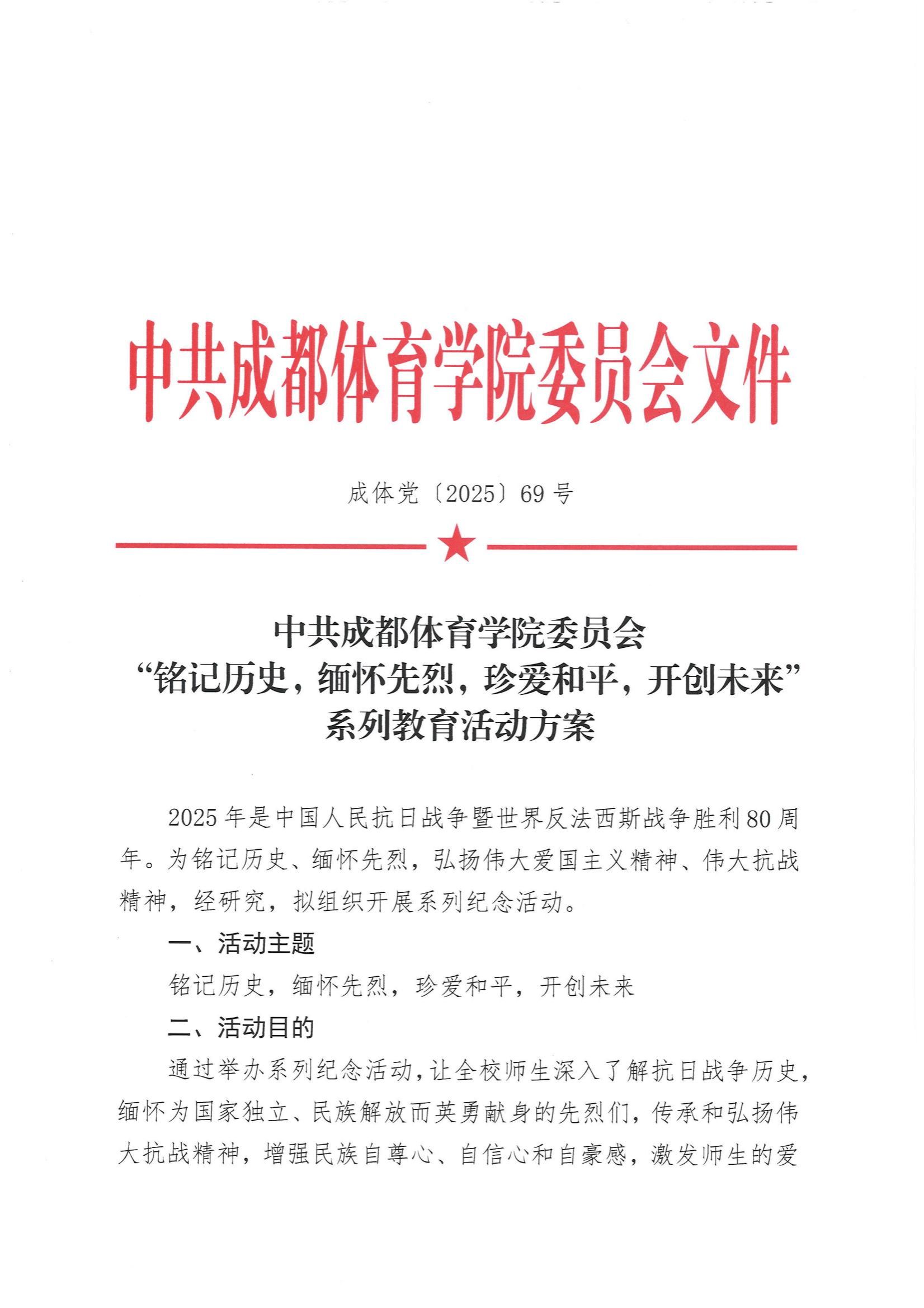 中共成都体育学院委员会 “铭记历史,缅怀先烈,珍爱和平,开创未来” 系列教育活动方案