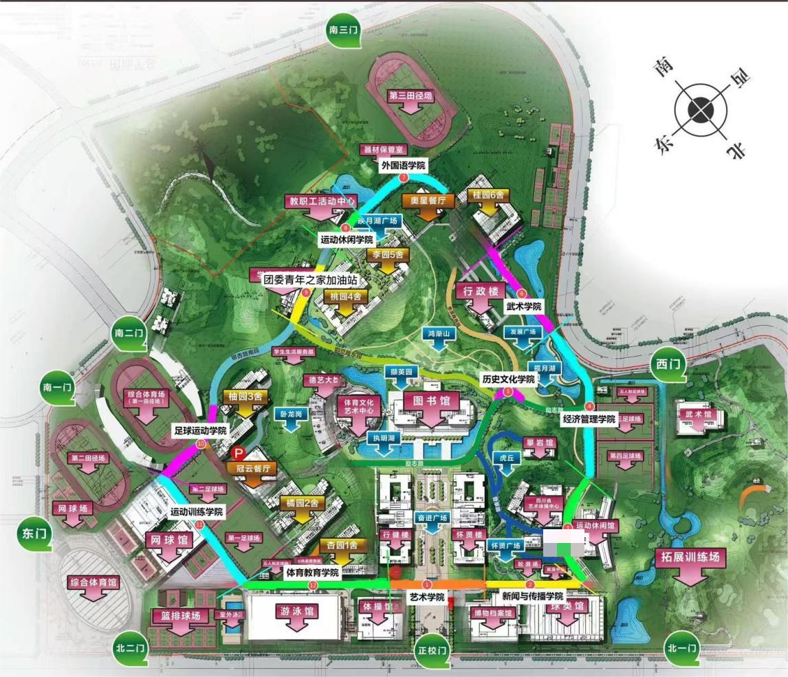赛后服务点(终点):运动医学与健康院——奋进广场。