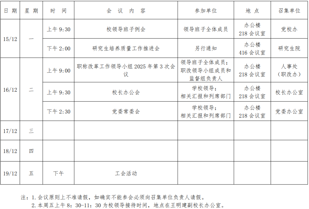 第十六周会议安排