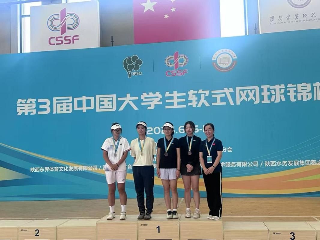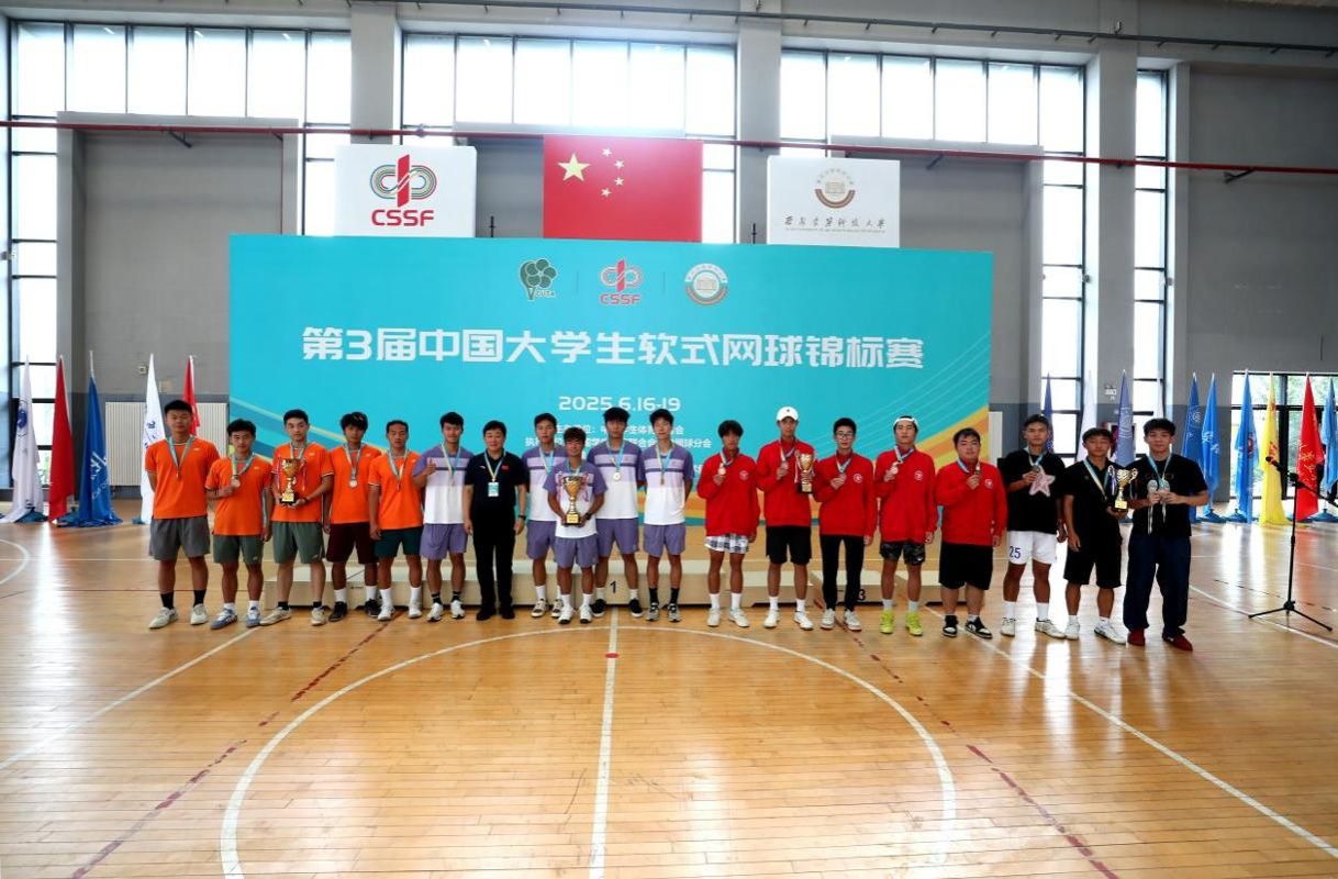 由中国学生体育联合会主办、中国学生体育联合会大学网球分会执行、西安建筑科技大学承办的2025年第三届全国大学生软式网球锦标赛于6月15日-6月20日在西安市举行。本次比赛共吸引了29所高校代表队的300余名软网健儿参与比赛,其中还包括了国家队队员的参加。我校软式网球代表队由陶玮健老师担任教练,共选派10名运动员参加了丙组(高水平组)的比赛。经过4天的激烈比赛,软式网球代表队共获得1金1银6铜的成绩。