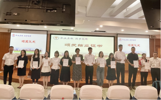 潘小非校长、胥万兵副书记为教师代表颁发结业证书