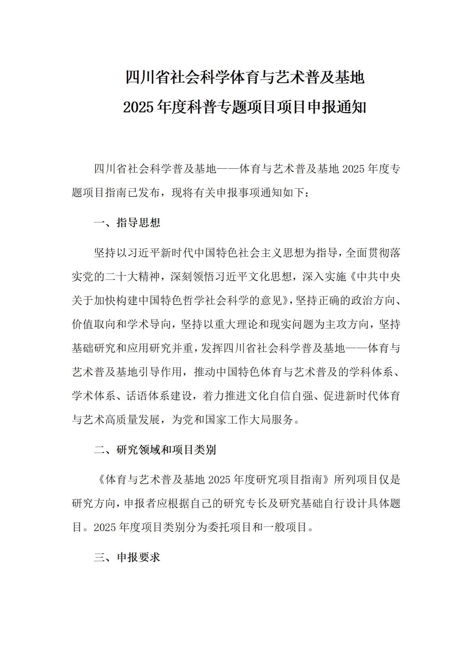 四川省社会科学体育与艺术普及基地2025年度科普专题项目项目申报通知