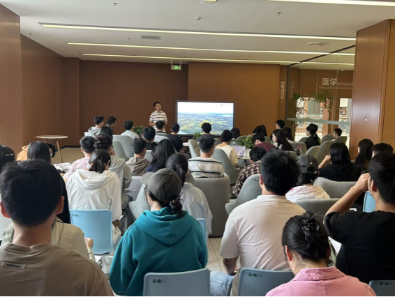 尚教授结合自身经历谈到,访学初期虽面临语言障碍,但随着交流深入,逐渐认识到有效沟通比语法与口音更为重要,鼓励同学们尽早加强英语实践,为未来科研合作打好基础。最后,尚老师介绍了美国弗吉尼亚大学医学院Zhen Yan教授实验室的研究范畴与成员构成,鼓励师生重视实验技能训练,夯实科研基础。
