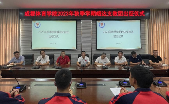 9月4日下午,我校2023年秋季学期峨边支教团出征仪式在健康大厦多功能厅会议室举行。学校党委副书记胥万兵、体育教育学院、运动训练学院、武术学院、足球学院等相关学院领导、辅导员及35名支教学生参加仪式。仪式由乡村振兴办主任张强主持。