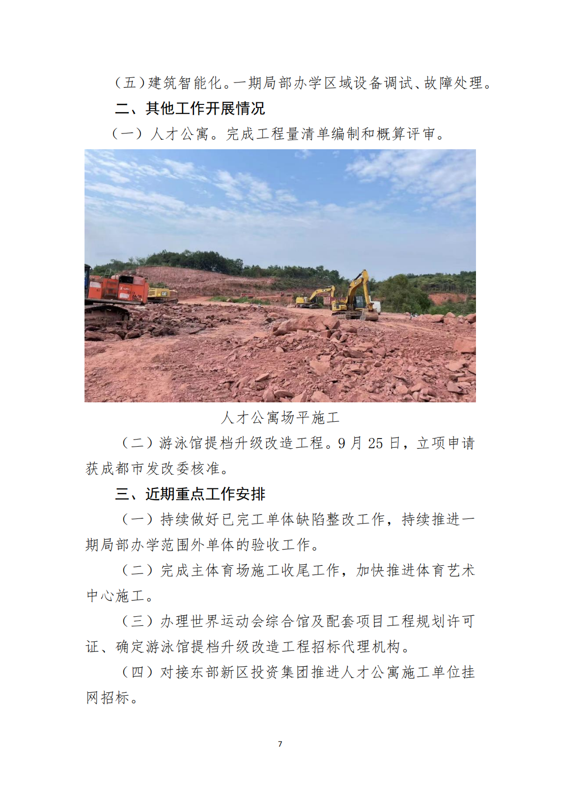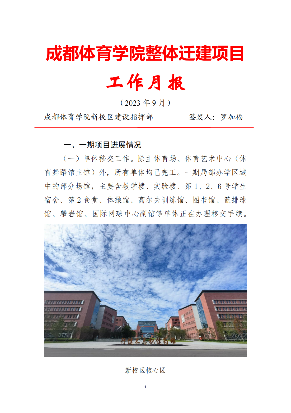 成都体育学院整体迁建项目工作月报(2023年9月)