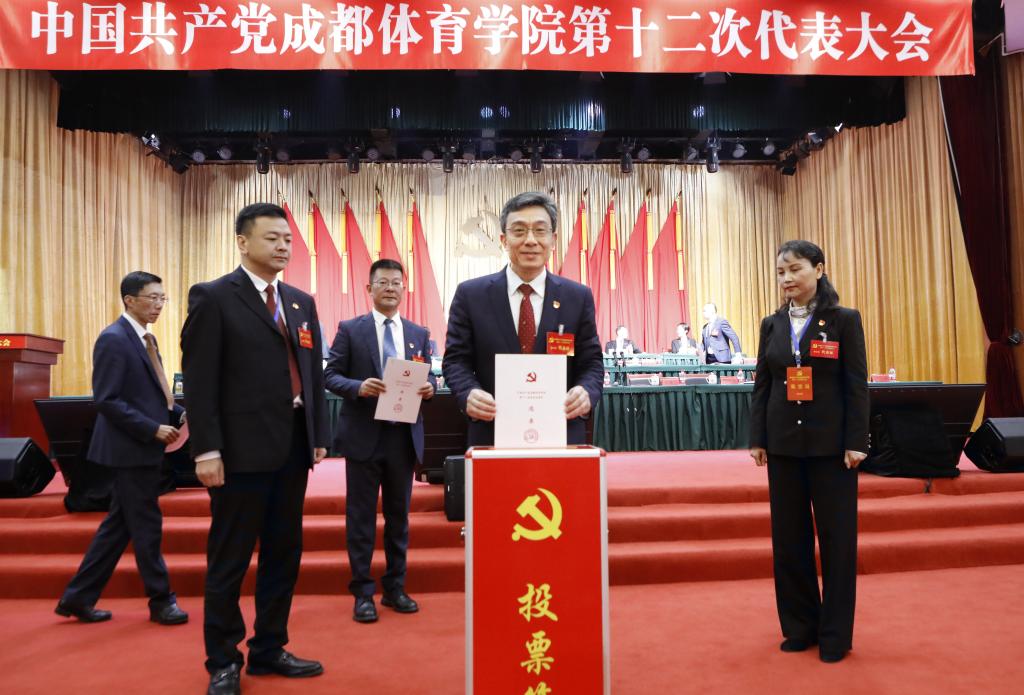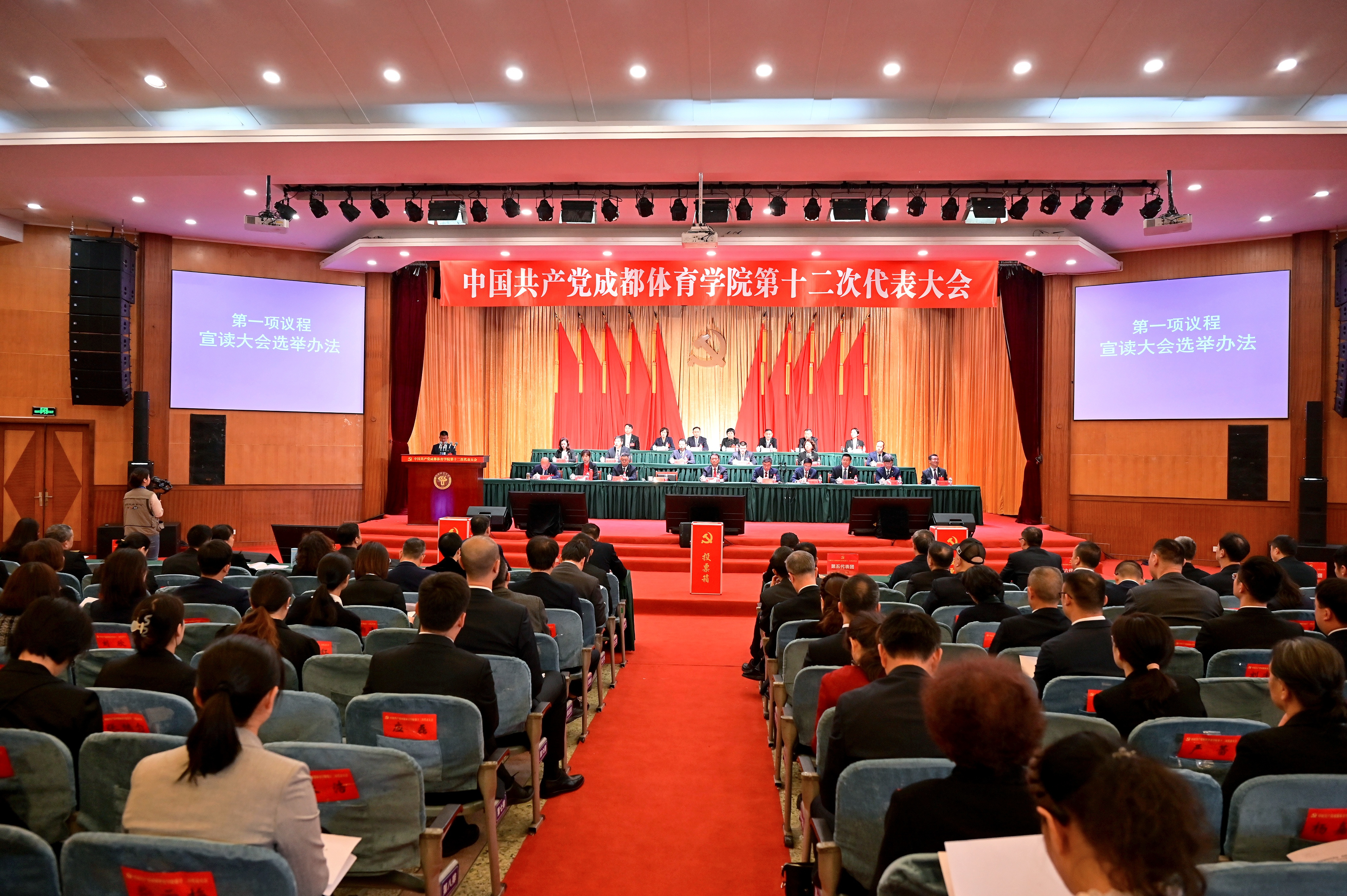 大会宣布了《中国共产党成都体育学院第十二次代表大会选举办法》《中国共产党成都体育学院第十二次代表大会选举大会总监票人、监票人、总计票人、计票人名单》《中国共产党成都体育学院第十二届委员会委员候选人名单》《中国共产党成都体育学院第十届纪律检查委员会委员候选人名单》。
