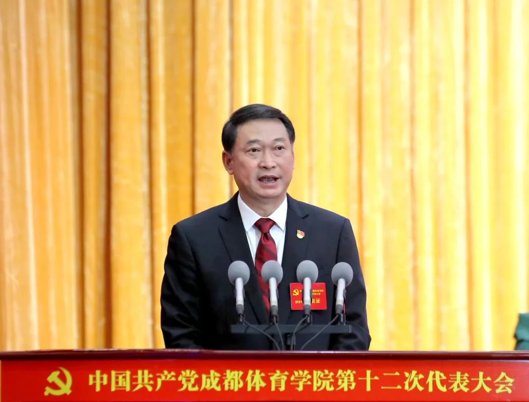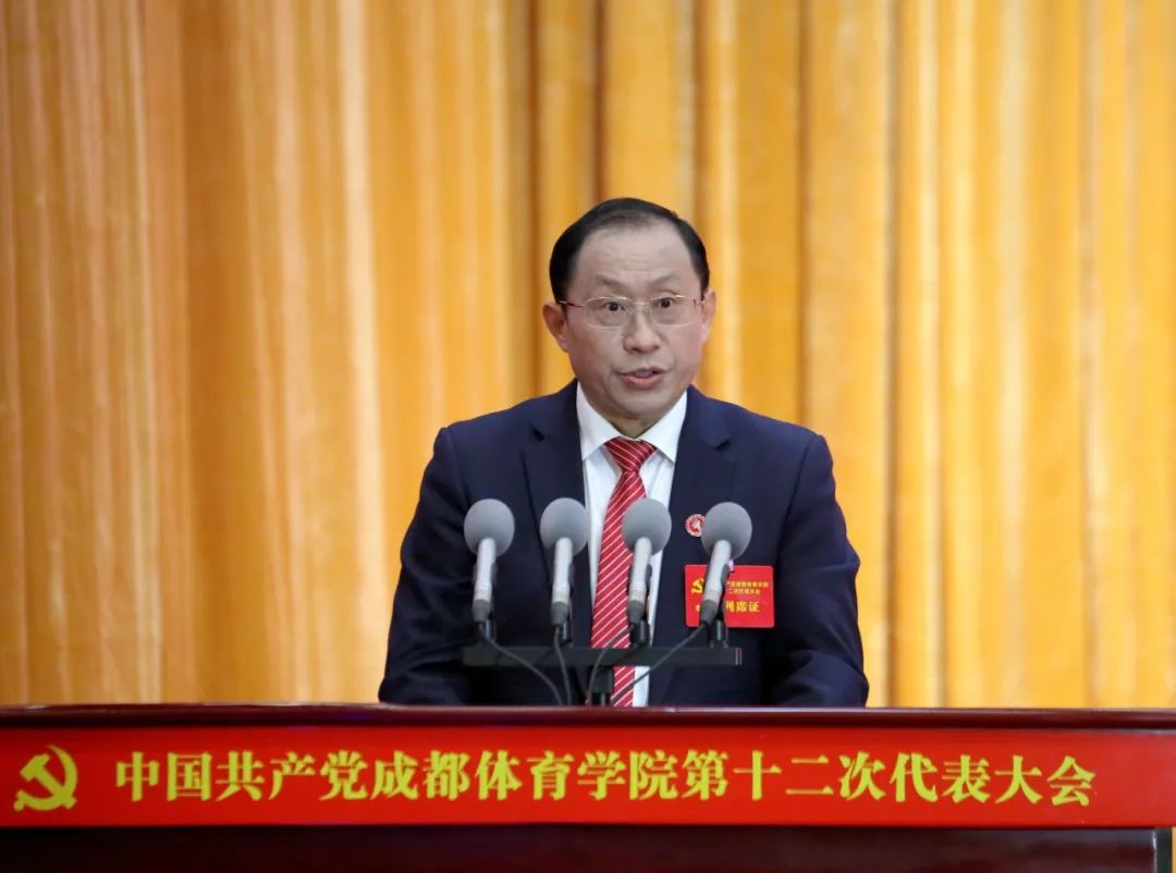 10月28日上午9时,中国共产党成都体育学院第十二次代表大会在学术报告厅隆重开幕。大会的主题是:高举中国特色社会主义伟大旗帜,以习近平新时代中国特色社会主义思想为指导,坚持和加强党对学校的全面领导,深入落实立德树人根本任务,勇担新时代使命,构建新发展格局,全面开启“卓尔不群”发展之路,加快推进建成世界一流体育大学进程,为实现中华民族伟大复兴的中国梦和治蜀兴川再上新台阶作出新贡献。