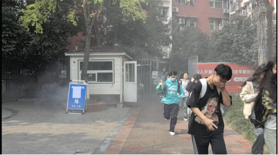 演练前,保卫处牵头制定了详尽的演练方案,进一步明确各工作组工作职责。演练中,各工作组和各院系协同配合、认真履职尽责。疏散演练过程中,模拟火灾现场,在学生公寓楼内燃起烟雾,响起警报,参加疏散演练的学生在应急疏散演练小组工作人员的引导下,正确使用湿毛巾掩住口鼻,弯腰低姿迅速有序撤离。整个演练过程紧张有序,老师和学生们行动迅速、配合默契,达到了预期目的。三岔湖校区还邀请东部新区消防救援大队三岔湖中队,授课教官强调了组织人员疏散逃生能力、消防宣传教育培训能力的重要性,并为参演师生现场演示了消火栓与水带、水枪的连接和使用,灭火器的使用和扑灭初期火灾的注意事项。