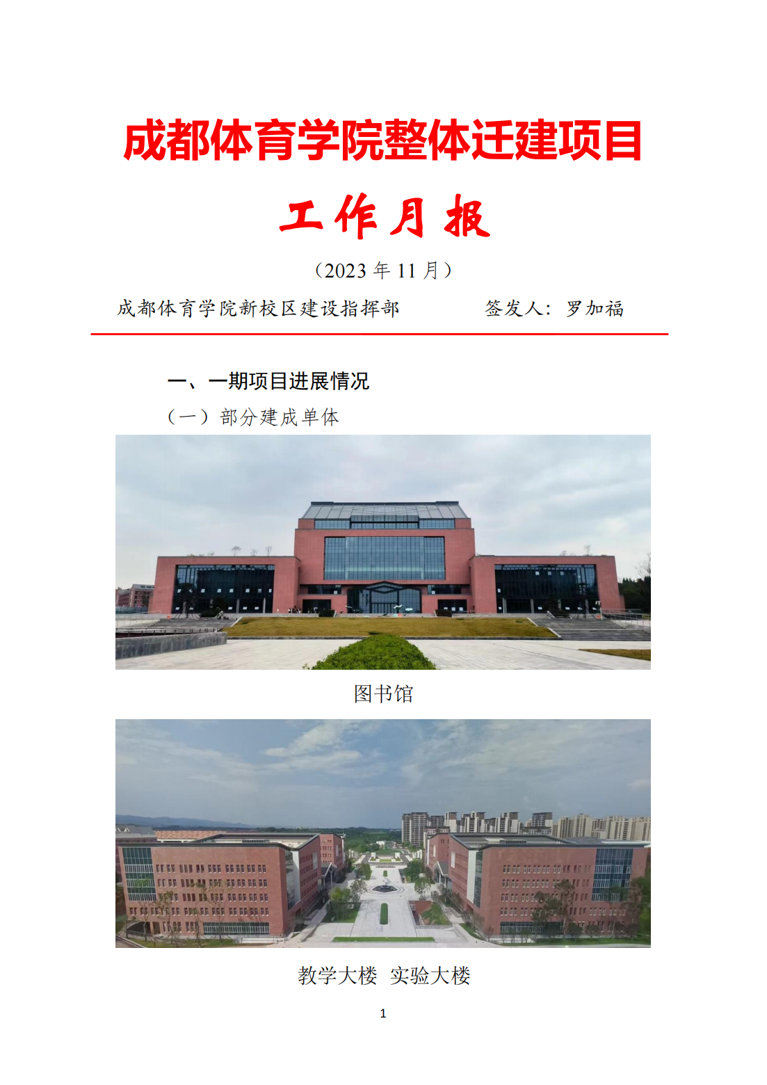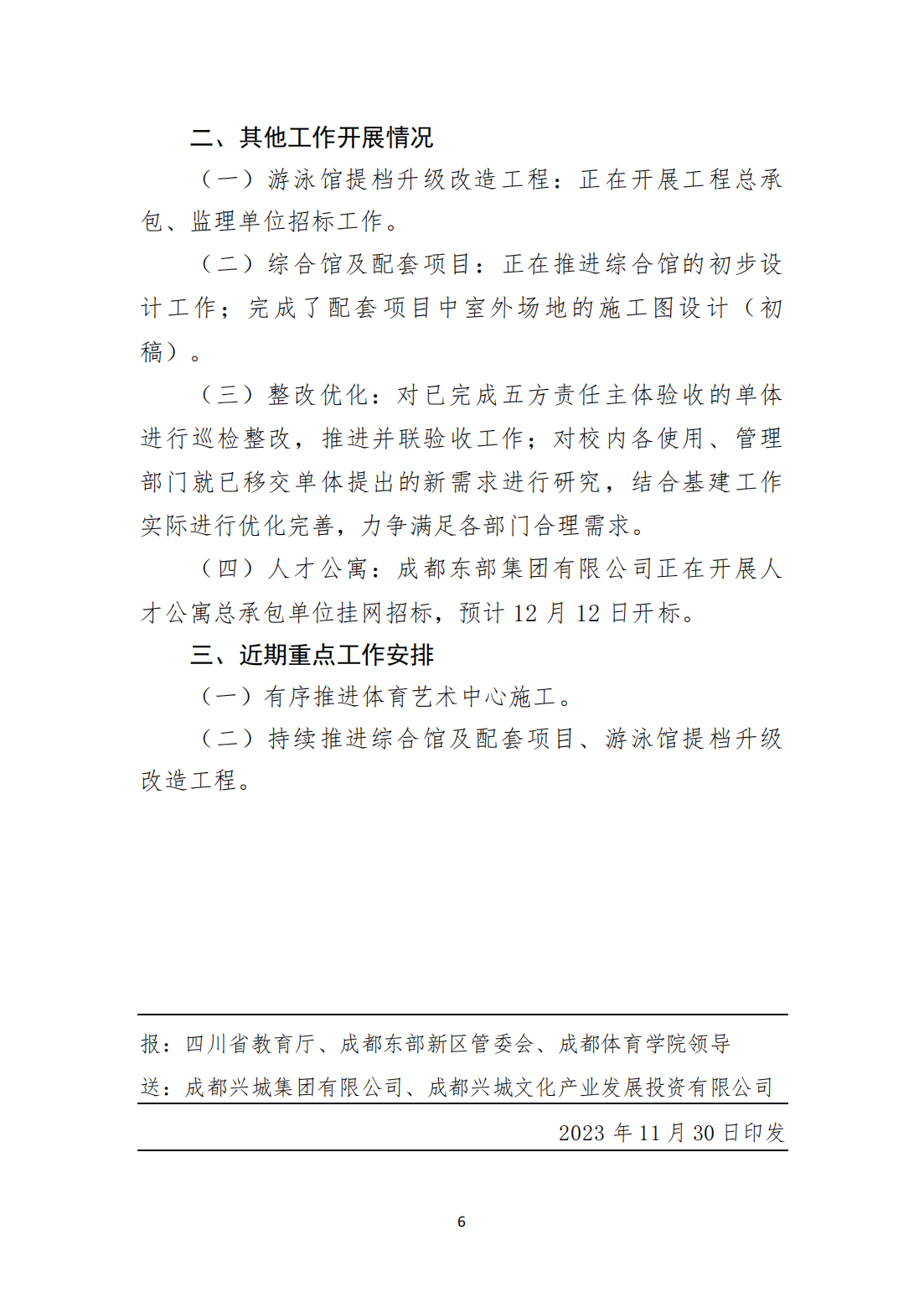 成都体育学院整体迁建项目工作月报(2023年11月)