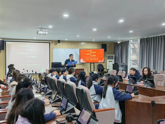 为深入学习贯彻学校第十二次党代会精神并落实校级干部联系班级制度,外国语学院于12月5日中午在行健楼外国语言文化中心召开“学习党代会精神,坚定理想信念,以我青春之姿,立志行健致远”2023级2班主题班会。学校党委书记舒为平作为校级干部联系人参与了此次班会,班会由班主任万千主持。