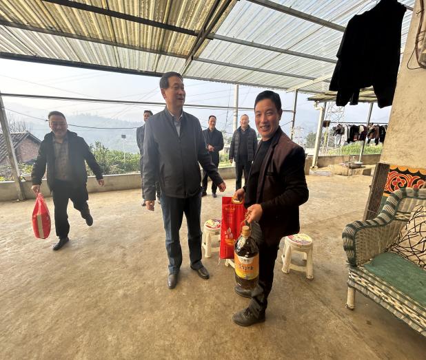 12月7日, 学校党委书记舒为平一行赴对口帮扶的峨边县毛坪镇新华村开展乡村振兴工作调研和走访慰问活动。峨边县县委书记漆宾接见并欢迎舒书记前来峨边县指导工作。党校办主任陈思恒、乡村振兴办主任张强,副县长舒安彬、教育局局长廖学兵以及毛坪镇党委书记苏红军全程陪同参与了调研和慰问活动。