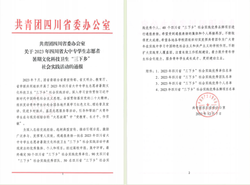 四川省“三下乡”社会实践活动表彰