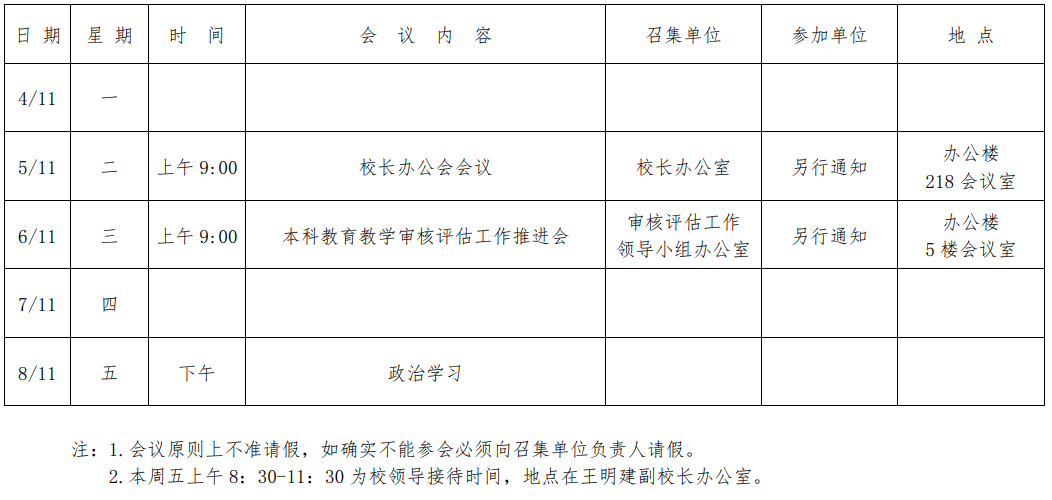 第五周会议安排