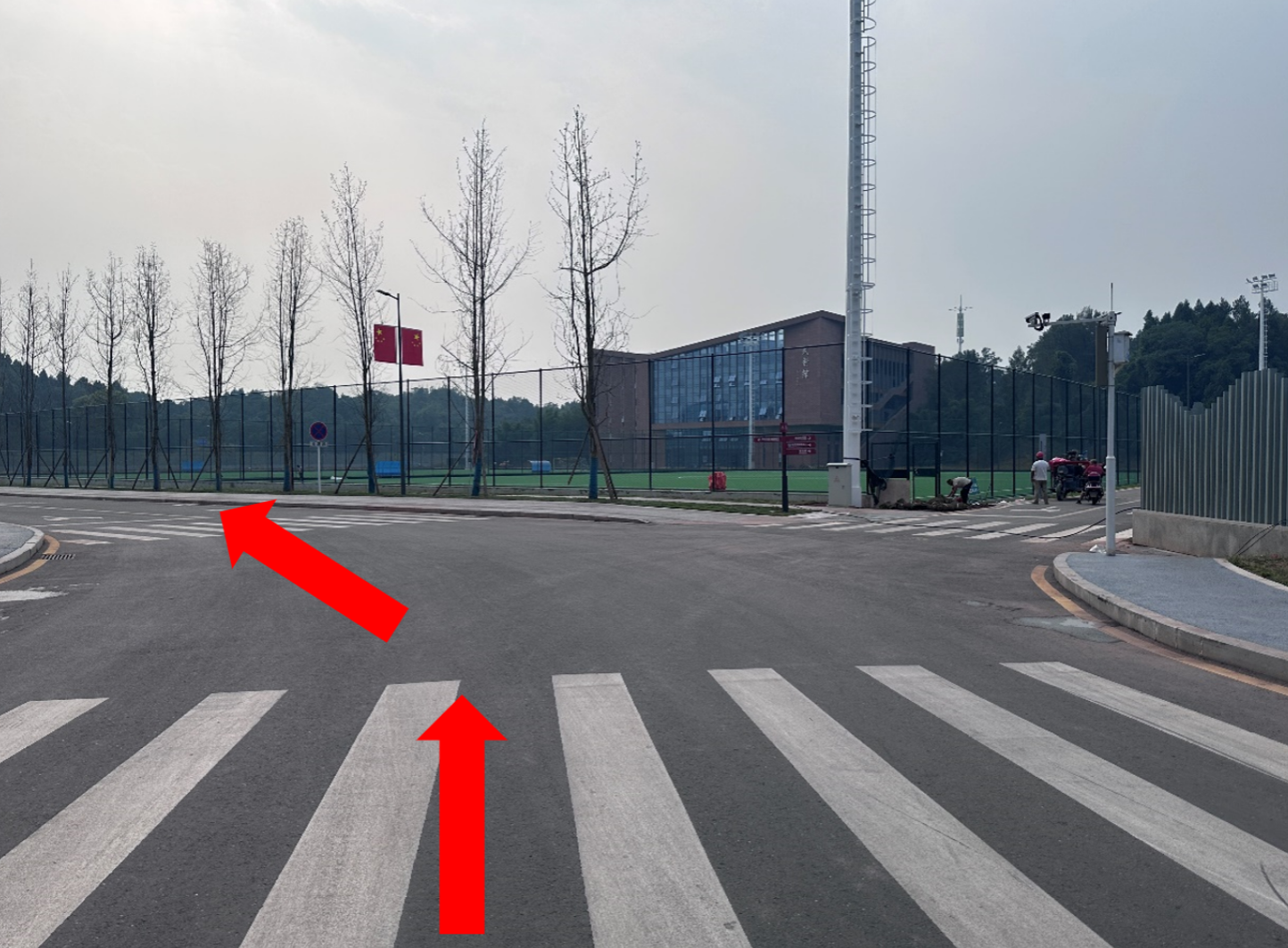 2.成都体育学院奋进广场银杏路北段喷水池处东侧斑马线处(起点)-银杏路北段与银杏路西段交界处-银杏路西段-银杏路西段与励志路交界处-励志路-奋进广场行建楼侧小道-成都体育学院奋进广场雕像处