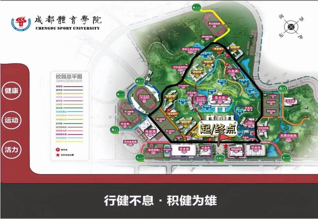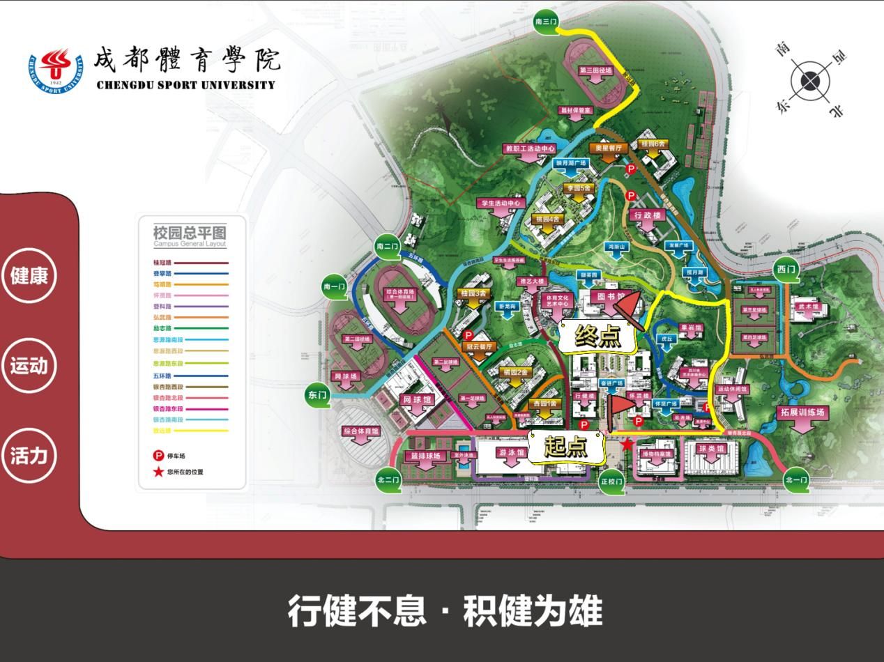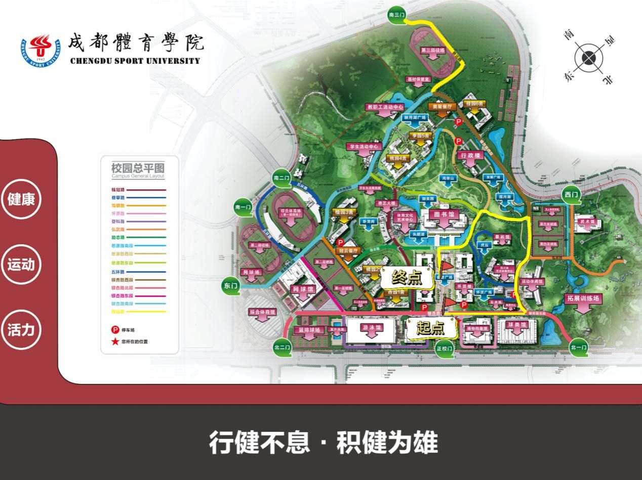 起点位置:成都体育学院奋进广场银杏路北段喷水池处东侧斑马线处
