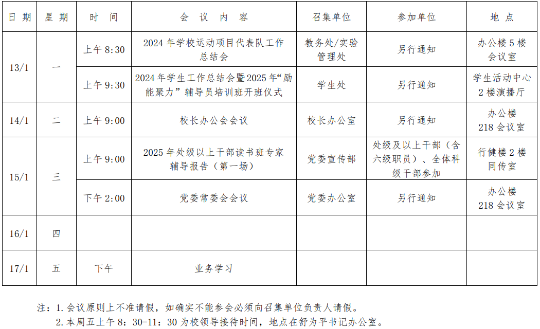 第五周会议安排