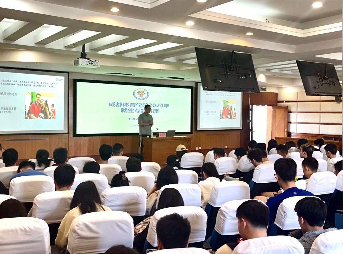现场气氛热烈,讲座内容丰富而实用,主讲人黄延东深耕体育教培行业12年,凭借其丰富的职场经验,通过生动表述和案例,给学弟学妹们讲述了他的就业创业“心里话”。同时,黄延东结合当前就业市场的最新动态以及职场现象,从出入职场必备技能、树立正确的就业观念、注重个人能力提升等十个方面帮助我校学生认识自我、探索职业兴趣,并详细分析了大学生就业过程中常见的认知误区与行为偏差,并提供了矫正策略,以培养学生的正确认知和积极就业态度。最后,黄延东鼓励大家在出入职场的过程中既要胸怀梦想,又要脚踏实地。