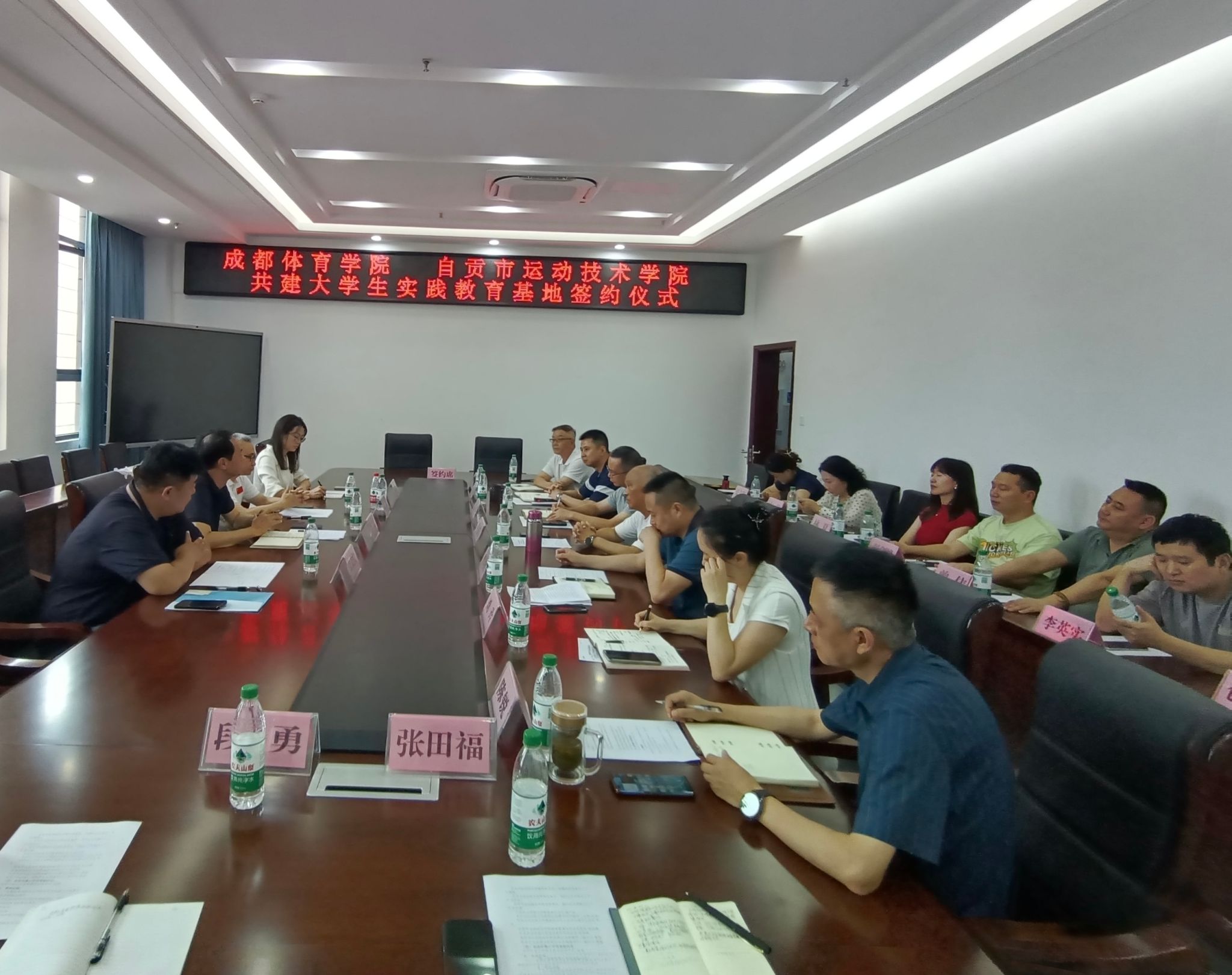 随后,双方就体育人才培养、体教融合、毕业生实习培养和就业等方面进行了座谈。自贡市运动技术学院党委书记、院长曹习东对此次成功合作表示由衷的感谢,表示将充分发挥实践教学平台作用,全力打造“就业蓄水池”,为毕业生开拓更多就业岗位。最后,运动训练学院院长李军再次感谢自贡市运动技术学院为成都体育学院实习教师的成长提供机会与平台,借助共建大学生实践教育基地为契机,严管理、高要求,催化实习教师成长成才。同时会提供更加专业的项目支持与训练指导,为人才培养、竞技体育发展等方面加油赋能。