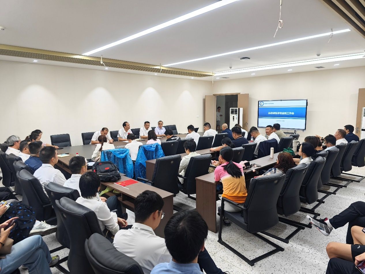 9月29日上午,运动训练学院在网球馆运动训练学院会议室召开全院工作会暨审核评估工作推进会,全体教职工参加。会议由李军院长主持。