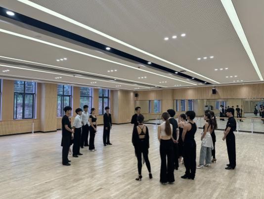 学校磨课交流活动前夕,学院副院长方奇教授带领国标舞教学团队对拉丁舞课程的教学内容、教学方法以及教学环节进行了深入的研讨与打磨,分享教学心得,为年轻教师提供宝贵经验。
