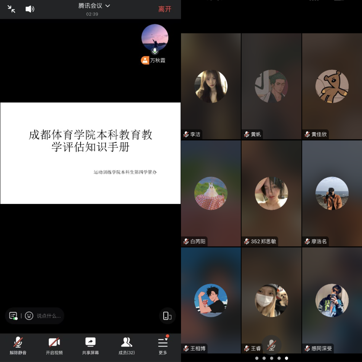 按照运动训练学院本科教育教学审核评估线上评估准备工作专题会会议要求,近期学院各研究生管理办公室、本科生管理办公室围绕审核评估应知应会知识组织学生进行了集体学习和讨论。