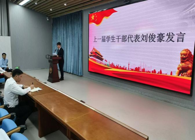 随后,上一届学生会副主席刘俊豪进行了工作总结,他鼓励所有学生会成员要秉持服务之心,不断提升个人能力,勇于创新,以更加饱满的热情和严谨的态度,积极为师生服务,为学院发展添砖加瓦。