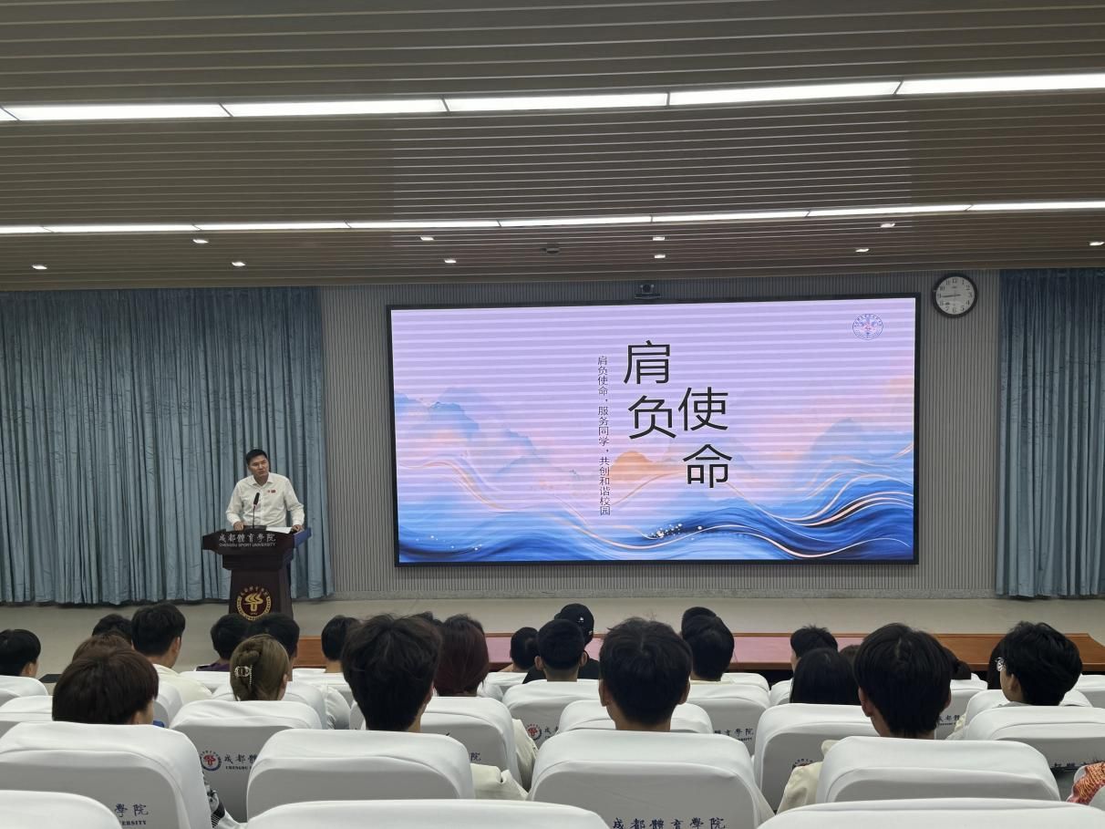 新一届团学干部大会上,罗兴山书记以《肩负使命,服务同学,共创和谐校园》为题,与同学们作了深入交流。并对学生干部们提出了三点期望:要凝聚力量,勇担使命,成为师生沟通的桥梁;要发挥榜样作用,以身作则,遇到问题及时反馈、有效解决;要加强团队建设,不断提升综合能力,共同为学生会的发展贡献力量。同时,他勉励全体学生干部要珍惜锻炼机会,在服务师生中不断提升自我,努力争做有理想、敢担当、能吃苦、肯奋斗的新时代好青年。