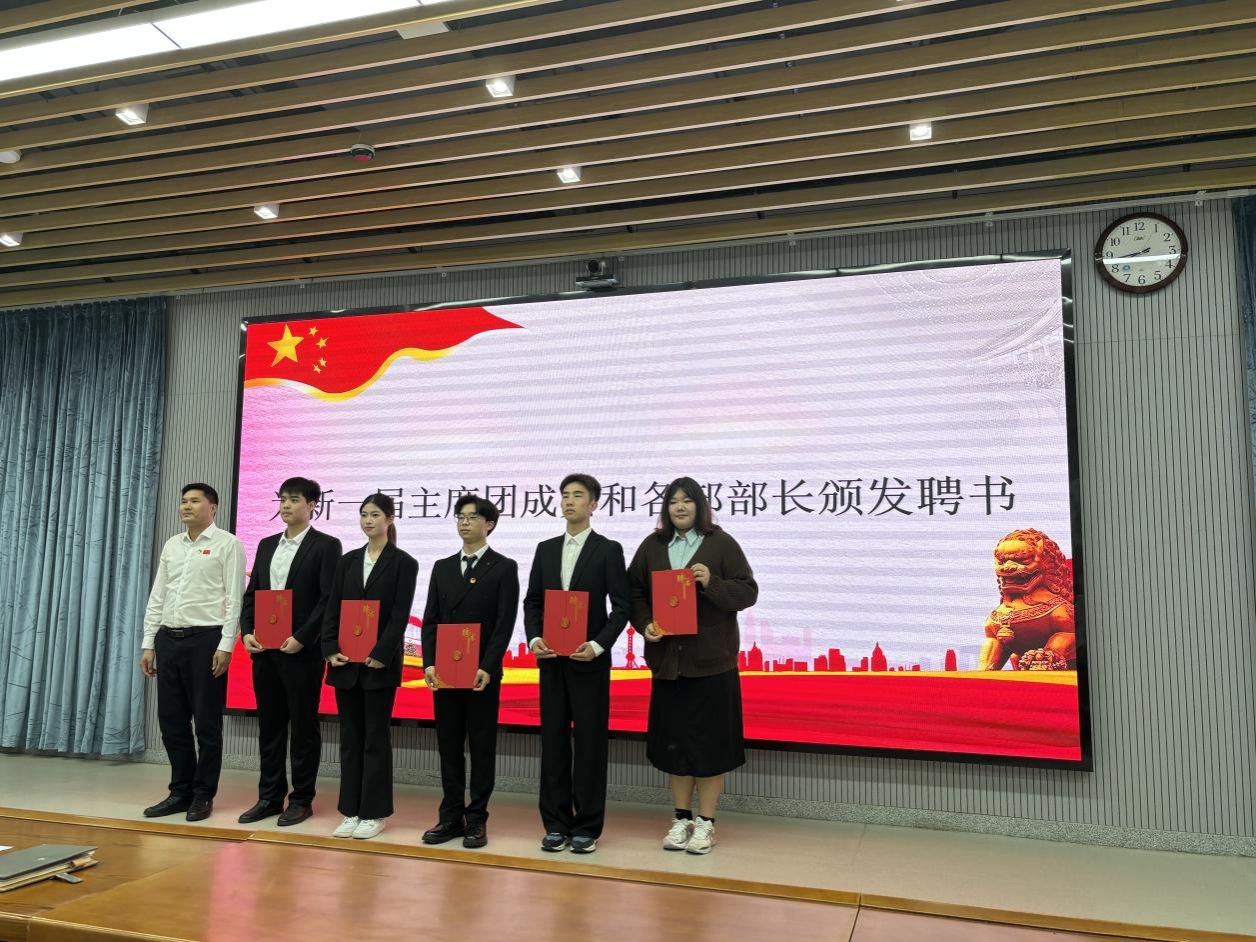 武术学院团总支书记刘洪源老师随后宣布了新一届团总支学生会的组成名单。罗兴山书记与李阳老师为新任学生会干部颁发了聘任证书,并见证了全体学生会干部的庄严宣誓。