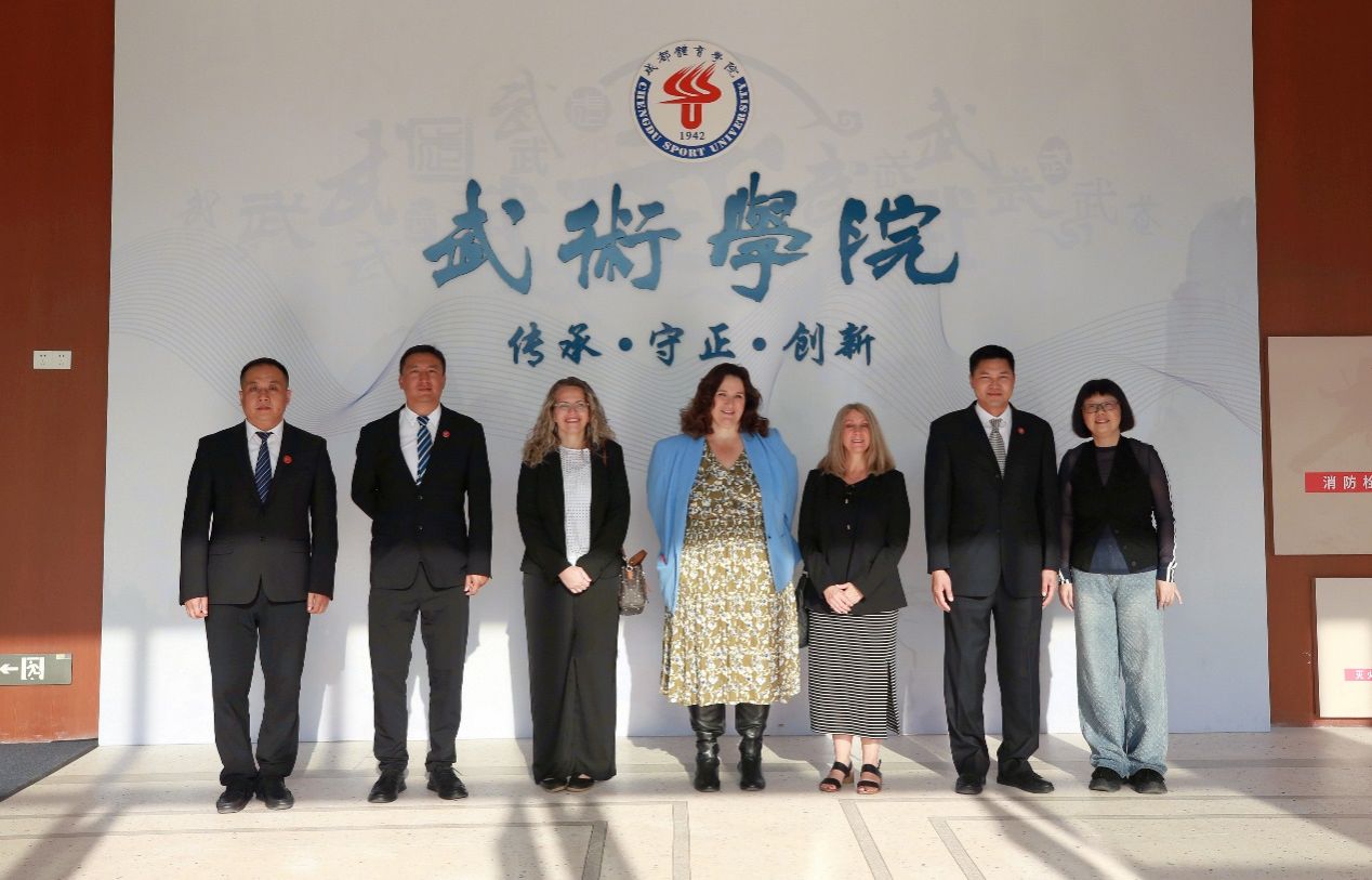 10月28日,美国南印第安纳大学教务长雪莉·布朗特(Shelly Blunt),国际项目中心主任埃米·兹拉特科夫斯卡(Emi Zlatkovska),运动医学系主任蕾妮·弗里明(ReneeFrimming)等一行三人,在学校国际合作与交流处处长杨飞的陪同下来我院开展交流活动。学院党委书记罗兴山、副院长李传国、学院党办/院办主任黄静,以及项目代表队教练刘金丽、张君等参加了活动。